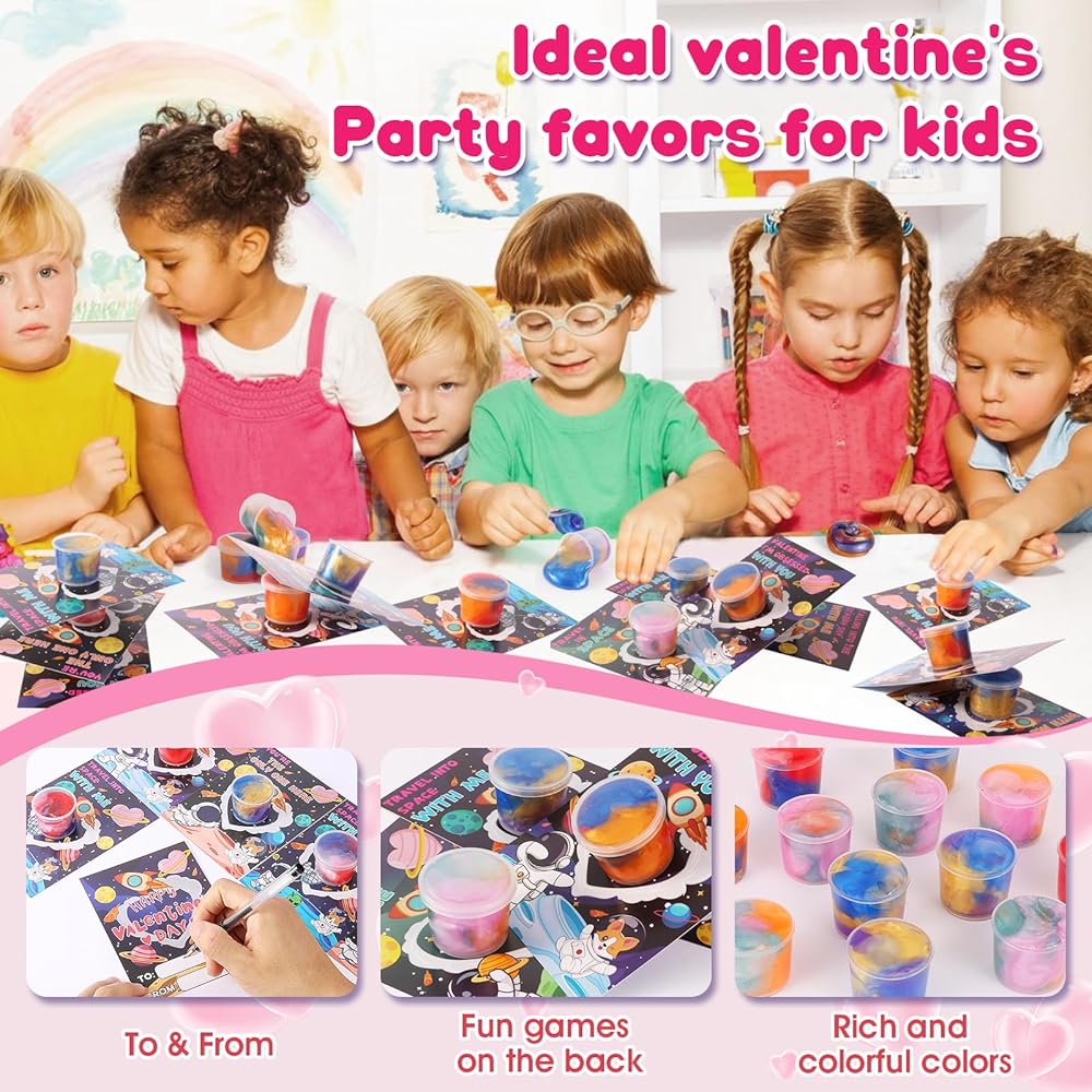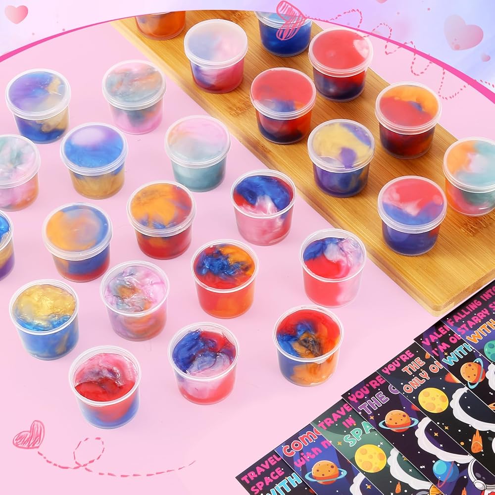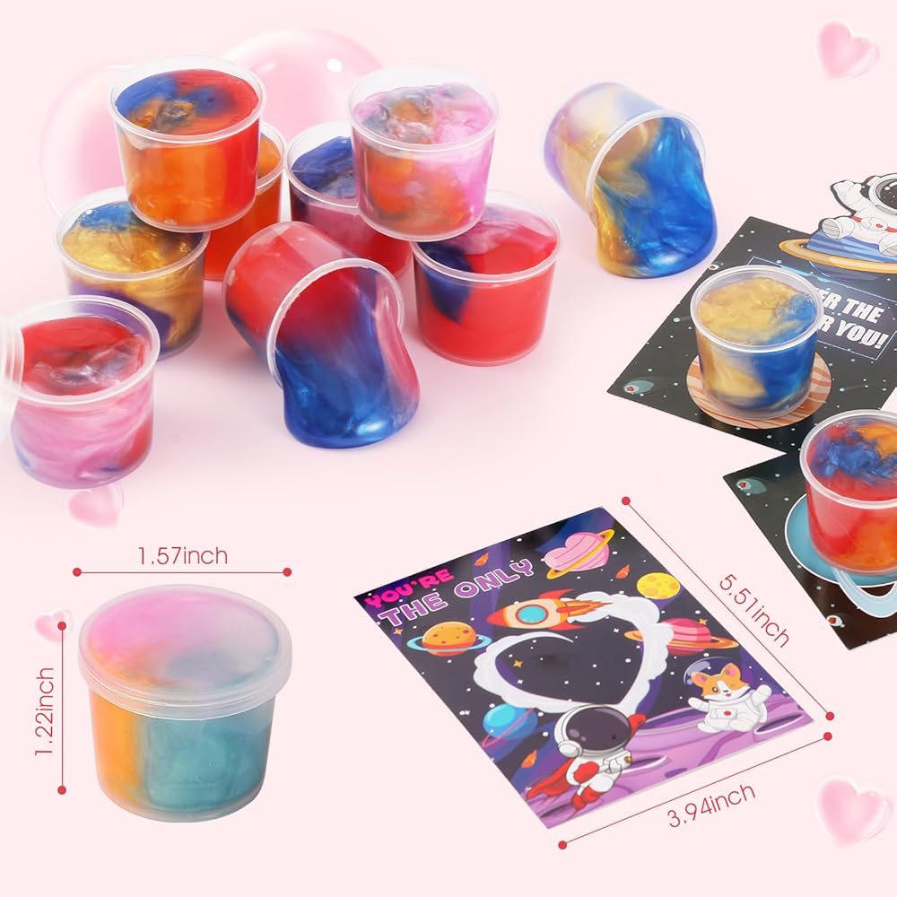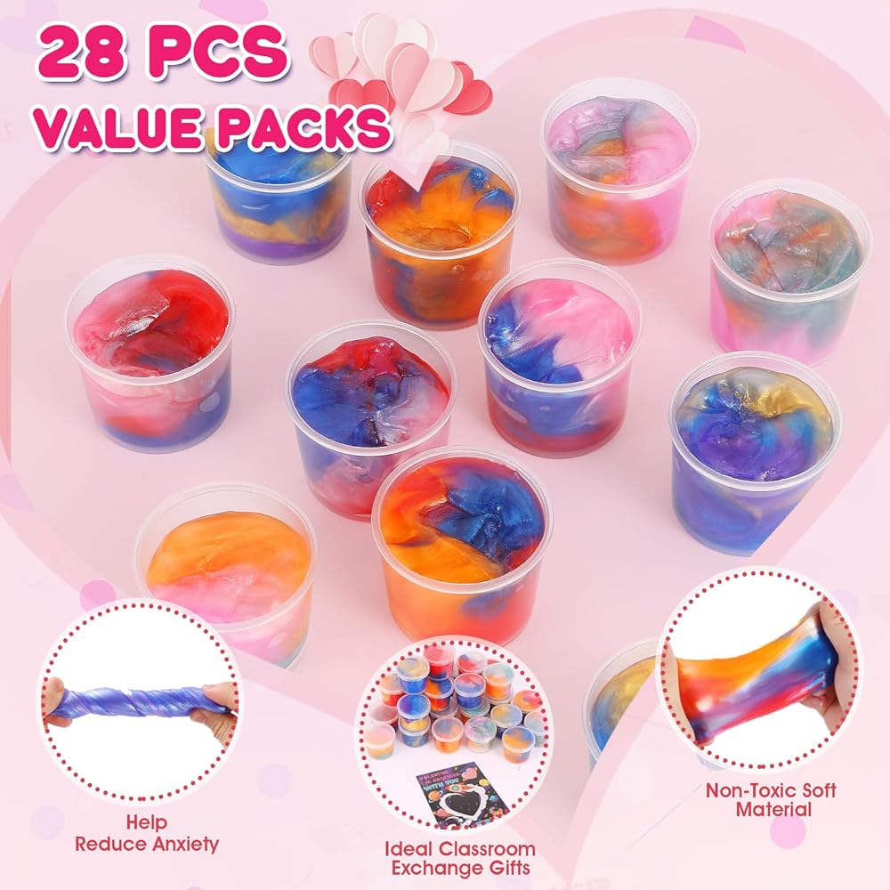 28 حزمة من بطاقات عيد الحب للأطفال في المدرسة مع جالاكسي سلايم، ألعاب سلايم بطابع الفضاء مع بطاقات عيد الحب للأطفال في الفصل الدراسي وهدايا التبادل، هدايا الحفلات المدرسية للأولاد والبنات