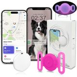 جهاز تعقب GPS للكلاب، جهاز تعقب صغير للقطط بنظام تحديد المواقع العالمي (GPS)، علامة تتبع للكلاب مع حامل، بدون رسوم شهرية، يعمل مع Apple Find My (iOS فقط)، جهاز تتبع الكلاب، مضاد للفقد، علامة مكتشف للحيوانات الأليفة/الأطفال (وردي مضيء).