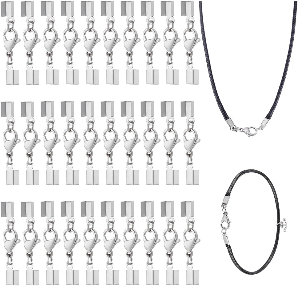 Bulk 30-Pack for Efficient Crafting: Each package includes 30 stainless steel cord end caps with lobster clasps, perfect for jewelry suppliers creating fold-over crimp necklaces or DIY enthusiasts crafting multiple rope chain connector ends and replacement closure sets