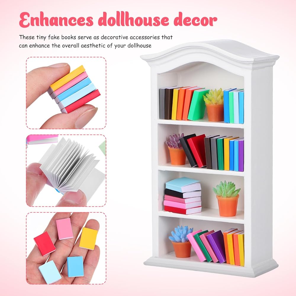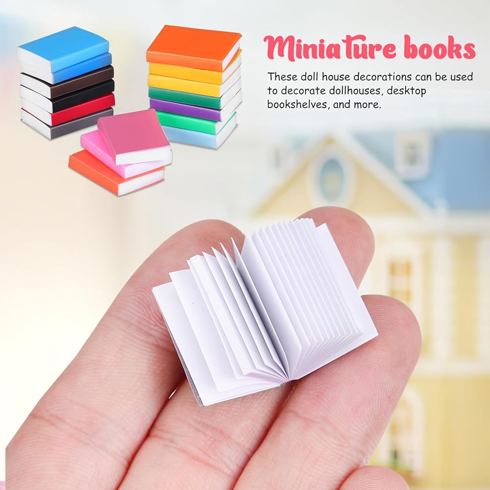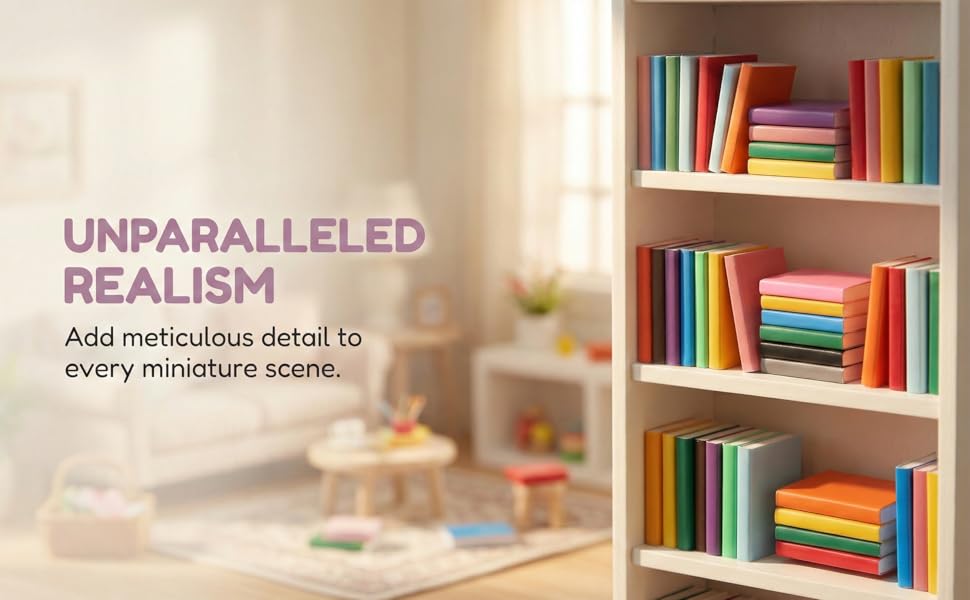 • تعزز ديكور بيت الدمى: تعمل هذه الكتب المصغرة بمثابة ملحقات زخرفية تضيف السحر والواقعية إلى إكسسوارات غرفة نوم بيت الدمى ومستلزمات غرفة القراءة في بيت الدمى، وتكمل إعدادات رف الكتب الصغيرة وعناصر مصغرات بيت الدمى
