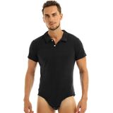 Short sleeves, turn-down collar with two fasteners, men's shirt design bodysuit, solid color