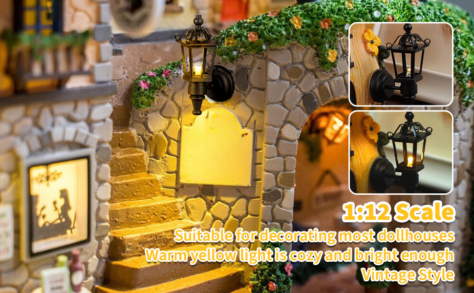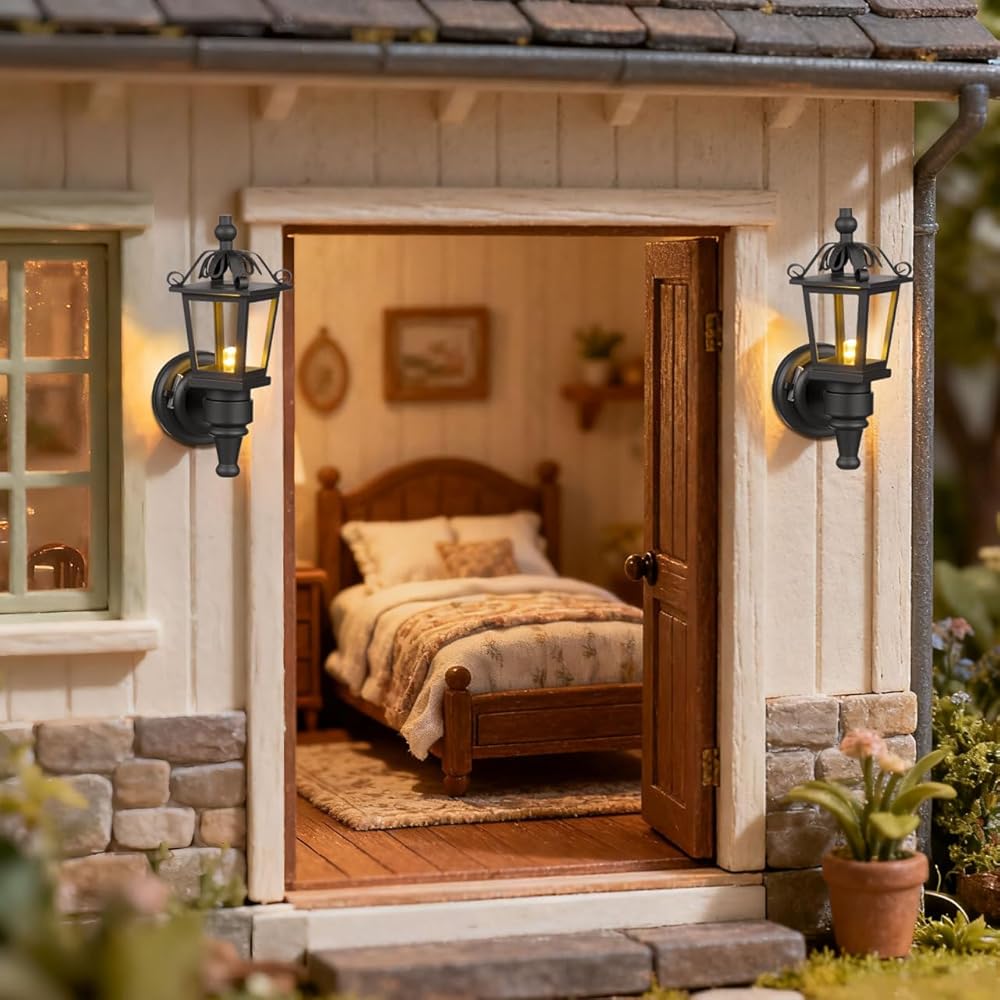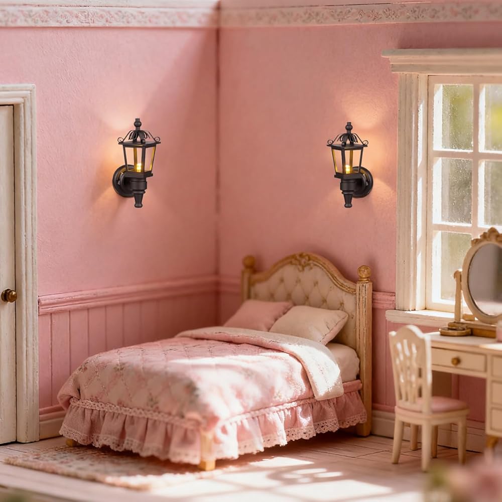مصباح حائط بيت الدمى: يتميز مصباح الحائط هذا بتصميم نابض بالحياة مع تفاصيل معقدة، مما يجعله إضافة مثالية للمشاهد المصغرة أو إعدادات بيت الدمى. مظهره الواقعي يعزز أصالة ديكور بيت الدمى الخاص بك