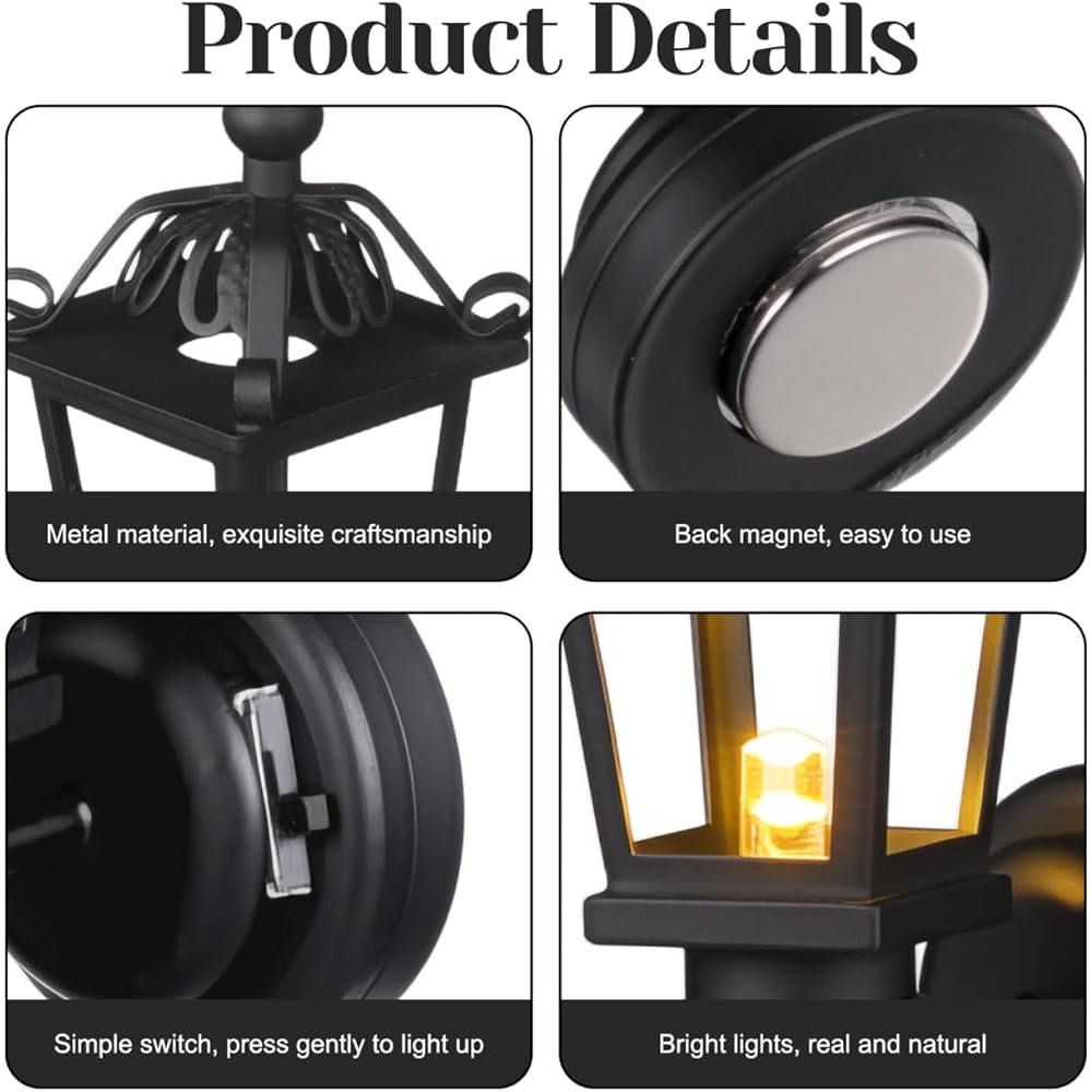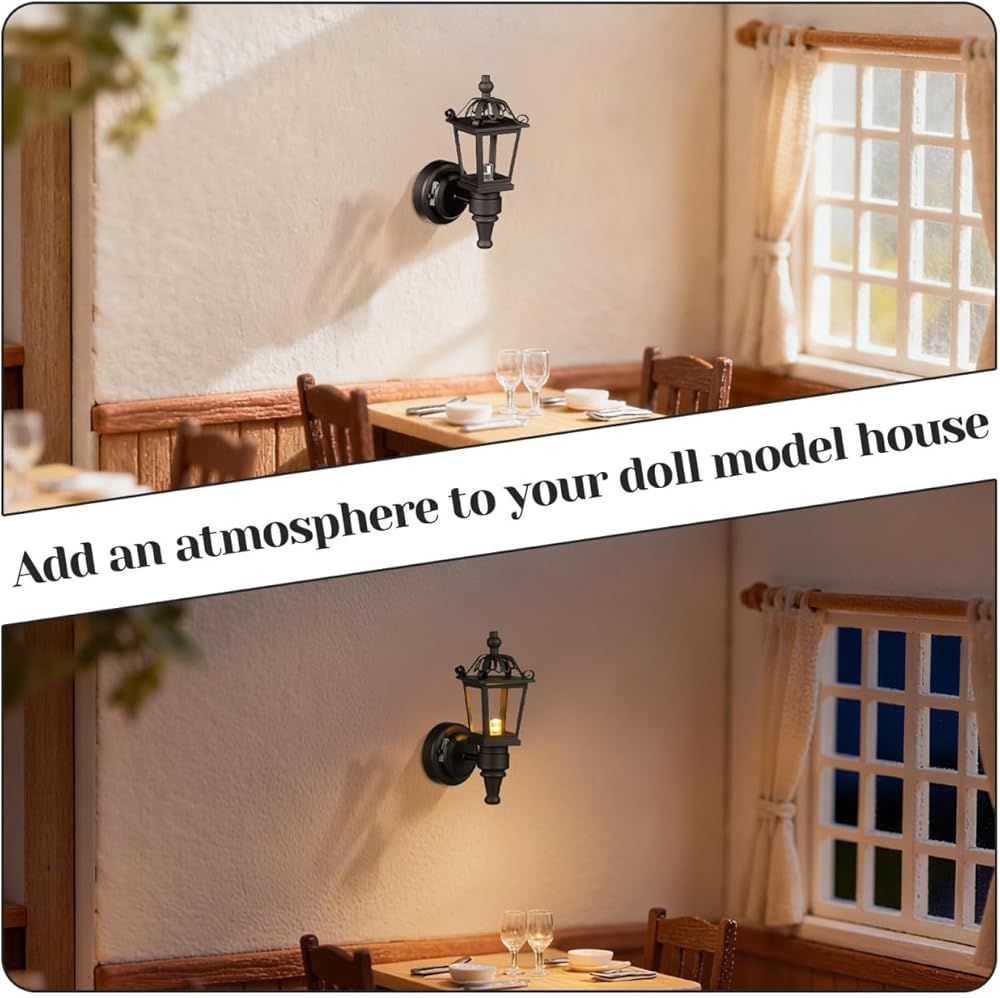 إضاءة بيت الدمى: مصابيح بيت الدمى تعمل بالبطارية مصنوعة من معدن قوي، هذا المصباح الصغير المثبت على الحائط مصمم ليدوم طويلاً ويقاوم التشوه، مما يضمن الاستخدام طويل الأمد في بيت الدمى أو المشروعات المصغرة. يضيف اللون الأسود لمسة من الأناقة إلى منزلك المصغر
