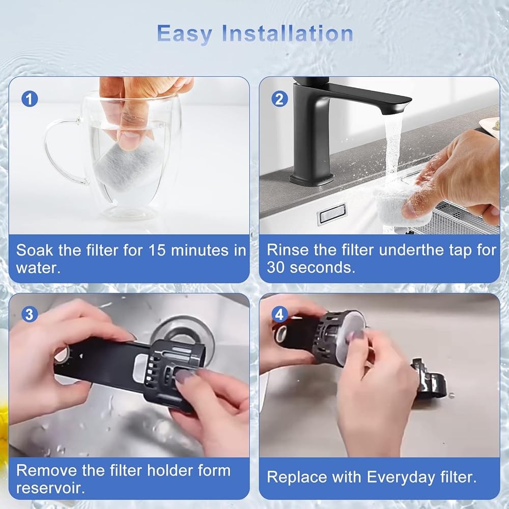 تساعد فلاتر المياه على إزالة الكلور من الماء ويجب تغييرها كل شهرين، أو 60 عبوة إعادة تعبئة