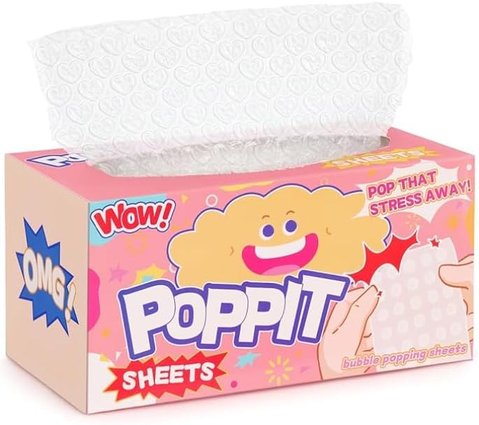 25 ورقة من المرح: يحتوي كل صندوق لتخفيف التوتر على 25 ورقة فقاعية، كل منها مملوءة بصفوف من الفقاعات على شكل دائرة جاهزة للضغط. احتفظ بالقليل منها في درجك أو سيارتك أو حقيبتك لتلك الأوقات التي تحتاج فيها إلى الاسترخاء فقط. لعبة بوب لتخفيف التوتر ومثالية للحفلات أو هدايا الفريق أو تحسين المزاج السريع في أي وقت