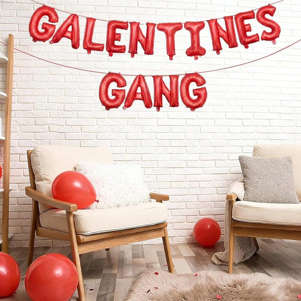 PACKAGE INCLUDES: A total of "GALENTINES GANG" letter balloons, along with 1 straw and 1 ribbon. Each letter balloon measures approximately 16 inches.