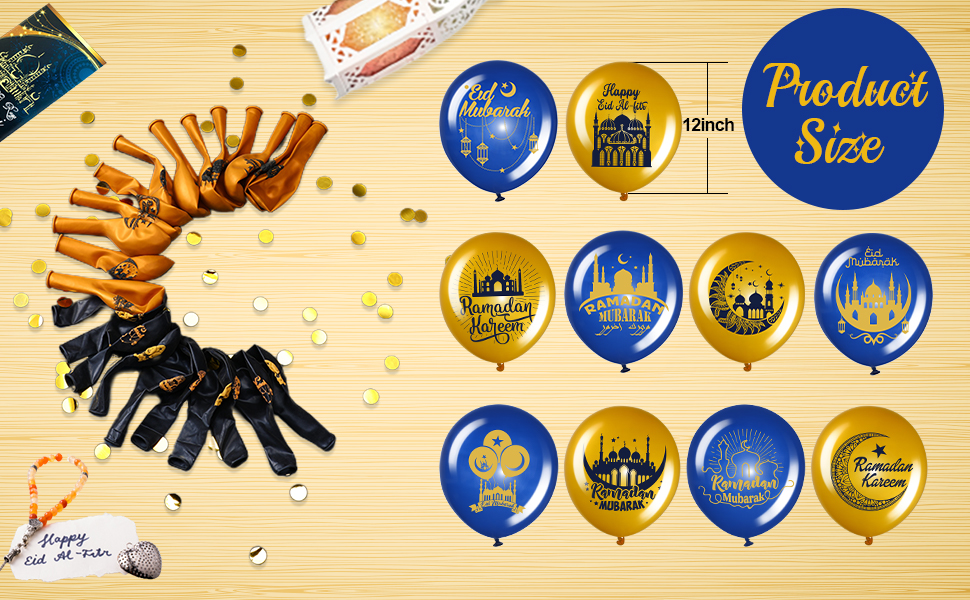 الكمية والحجم: سوف تحصل على ما مجموعه 40 قطعة من بالونات زينة حفلات رمضان، يبلغ مقاس كل بالون حوالي 12 بوصة، وهو ما يكفي لمساعدتك على زيادة أجواء حفلة رمضان كريم بسهولة، وتتوفر مجموعة متنوعة من الألوان