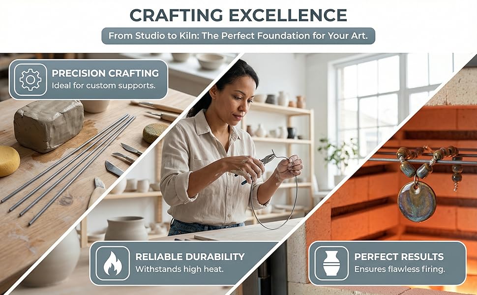 استخدام متعدد الاستخدامات: مناسب لتطبيقات متعددة مثل دبابيس الدعم ذاتية الصنع، وحرق الخيط، ودعامات حرق المجوهرات السيراميكية، وإطلاق النار المعلق المنحني، وتعزيز الإبداع لصناعة الفخار والمجوهرات بنفسك.
