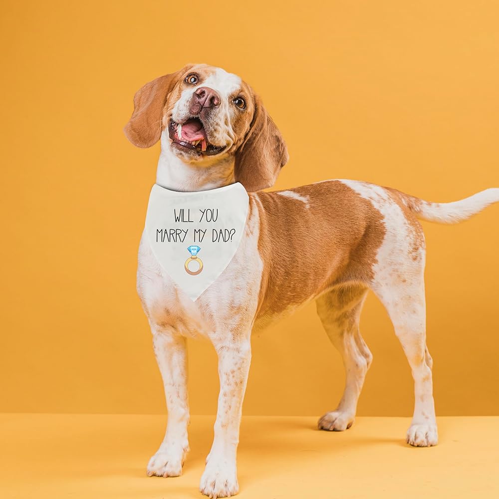 Occasions: Announcement for engagement, bridal shower parties, wedding day, wedding gift for dog mom/ dad. Size: 18x18x26 in (Adjustable fit for different dogs) The bandanas are easy and comfortable for pets to wear
