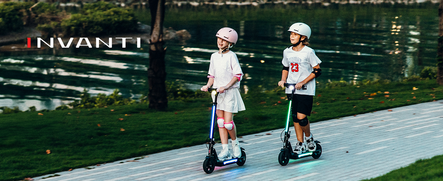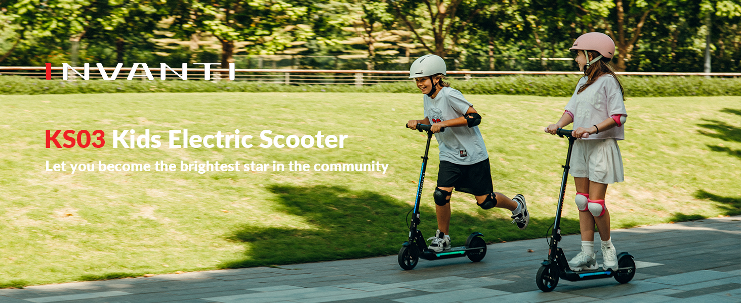 سكوتر كهربائي INVANTI KS03 للأطفال بعمر 8 سنوات فما فوق، محرك ذروة 350 وات، بحد أقصى 12 ميل في الساعة و10 أميال، عجلة صلبة 7 بوصة، أضواء LED، شاشة LED وفرامل مزدوجة، سكوتر كهربائي للأطفال مع 3 سرعات وارتفاعات قابلة للتعديل