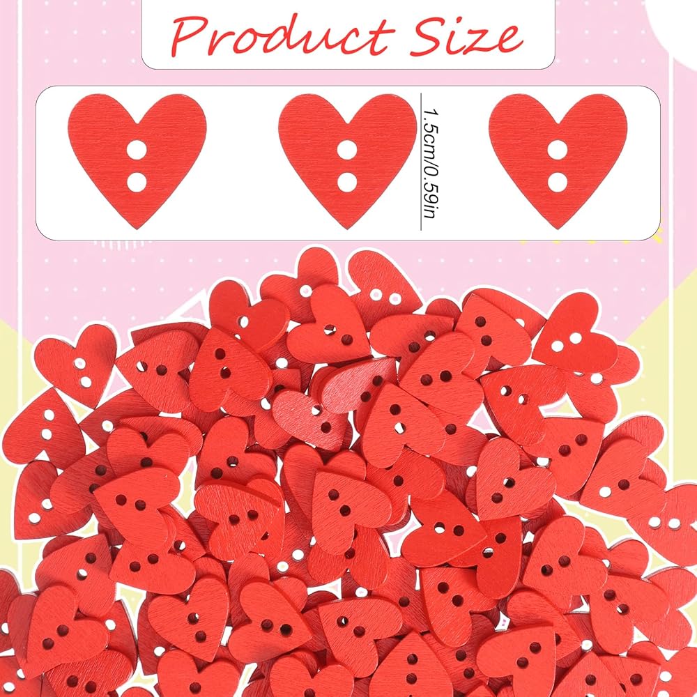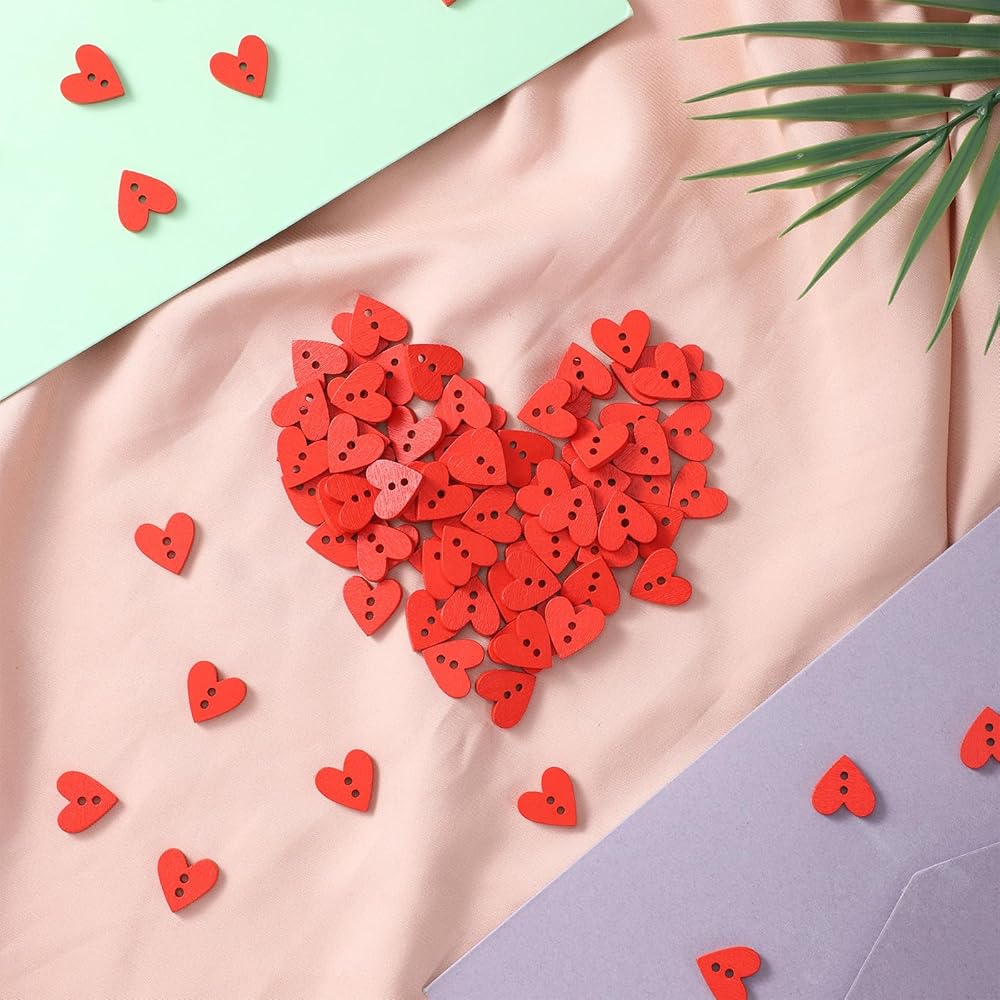 【Premium Material】The red heart buttons are made of high-quality wood,with smooth finish and consistent coloring,sturdy and long-lasting