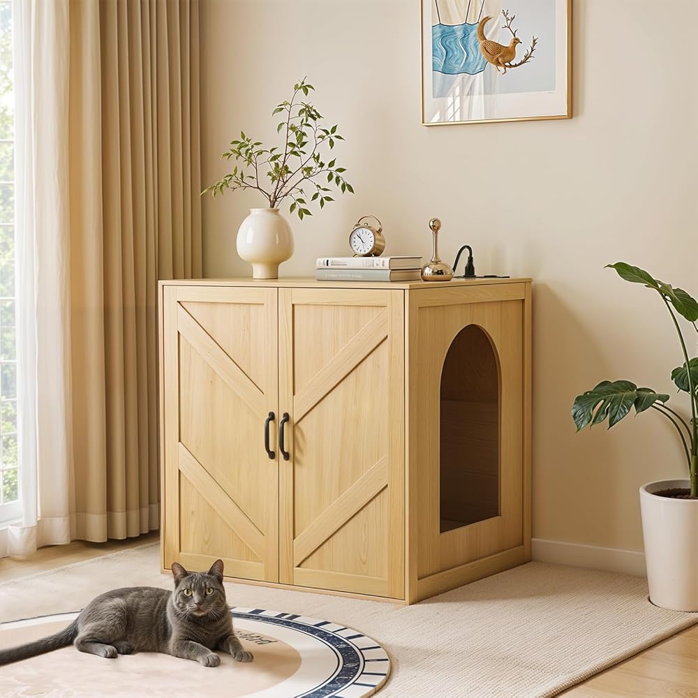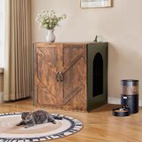 حاوية صندوق فضلات القطط، حاوية صندوق فضلات كبيرة أوتوماتيكية لـ 3/4، مع أبواب قابلة للإزالة بنفسك، محطة شحن، خشب البلوط
