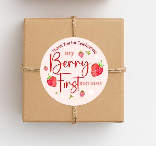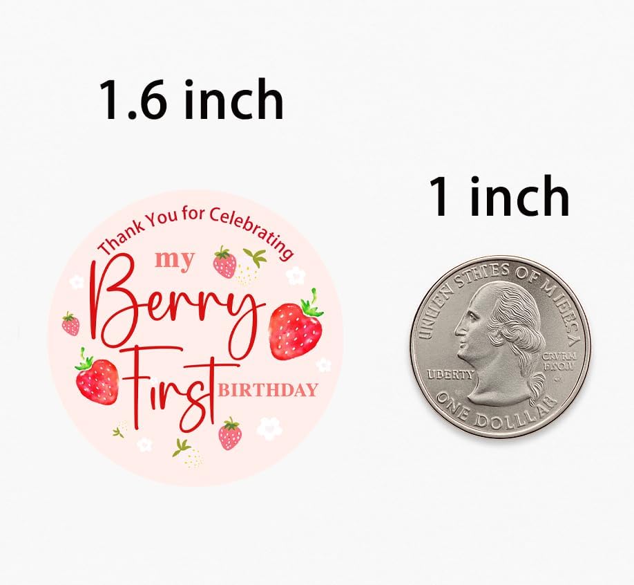 ملصقات عيد ميلاد الفراولة، ملصقات هدايا لحفلات أعياد الميلاد الأولى من بيري، ملصقات دائرية مقاس 1.6 بوصة لحقائب الهدايا والهدايا، ملصقات "شكرًا لك على الاحتفال بعيد ميلادي الأول من بيري"، 120 قطعة