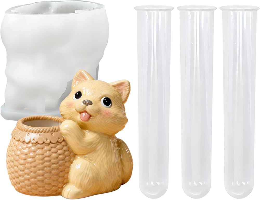 مجموعة قوالب الراتنج المائية على شكل جرو كرتوني، 3 حامل نبات أنبوب اختبار شفاف مع قالب سيليكون للكلب لمحطة انتشار نبات راتنجات الإيبوكسي، الحفاظ على الزهور بنفسك، ديكور المنزل المكتبي