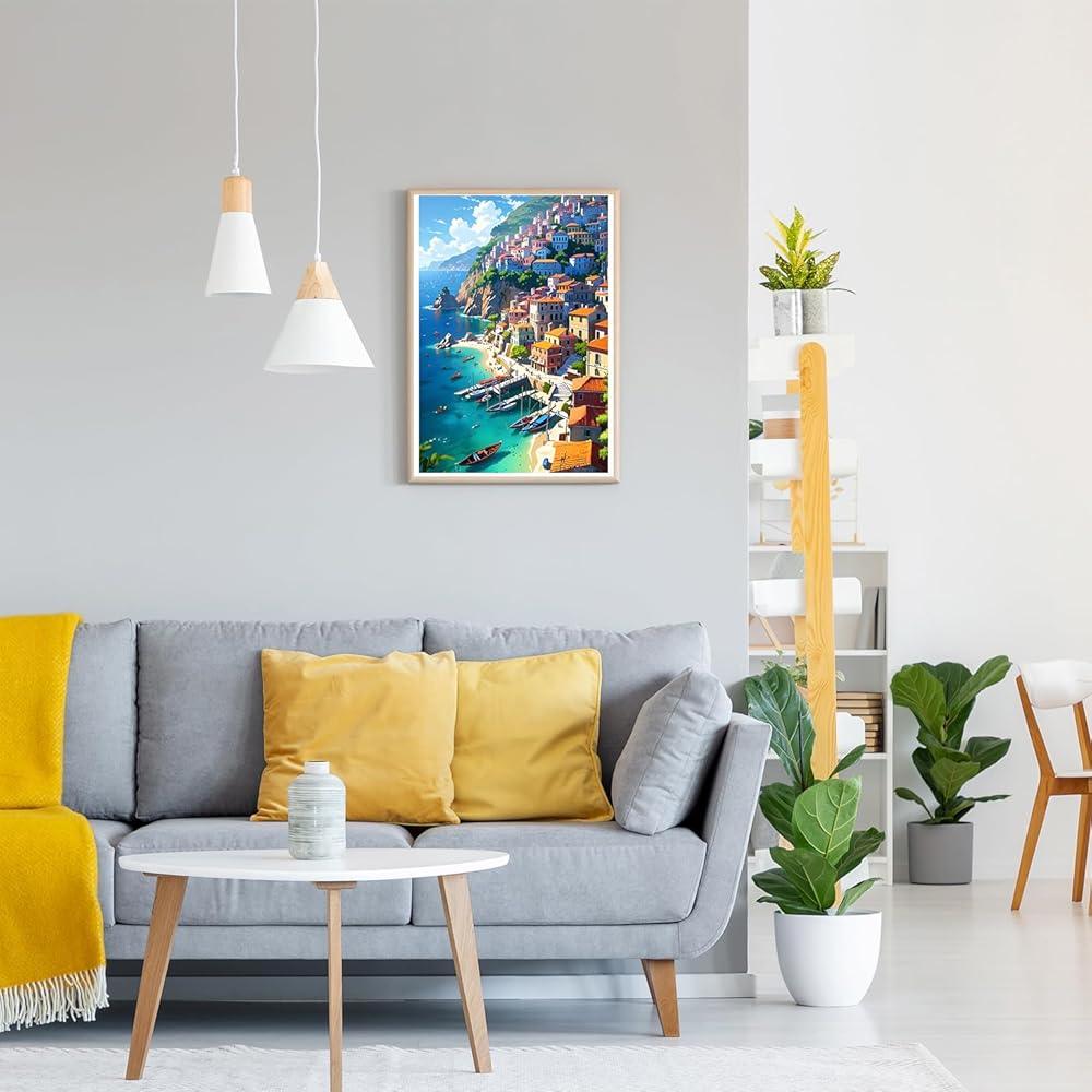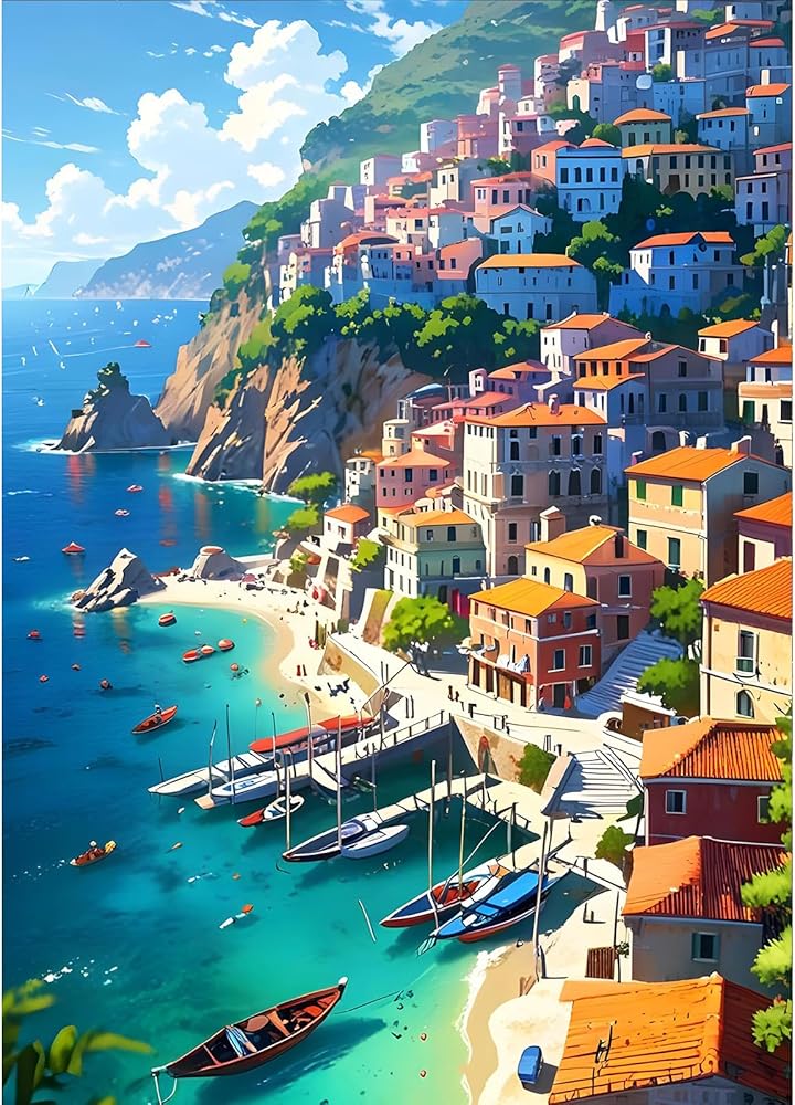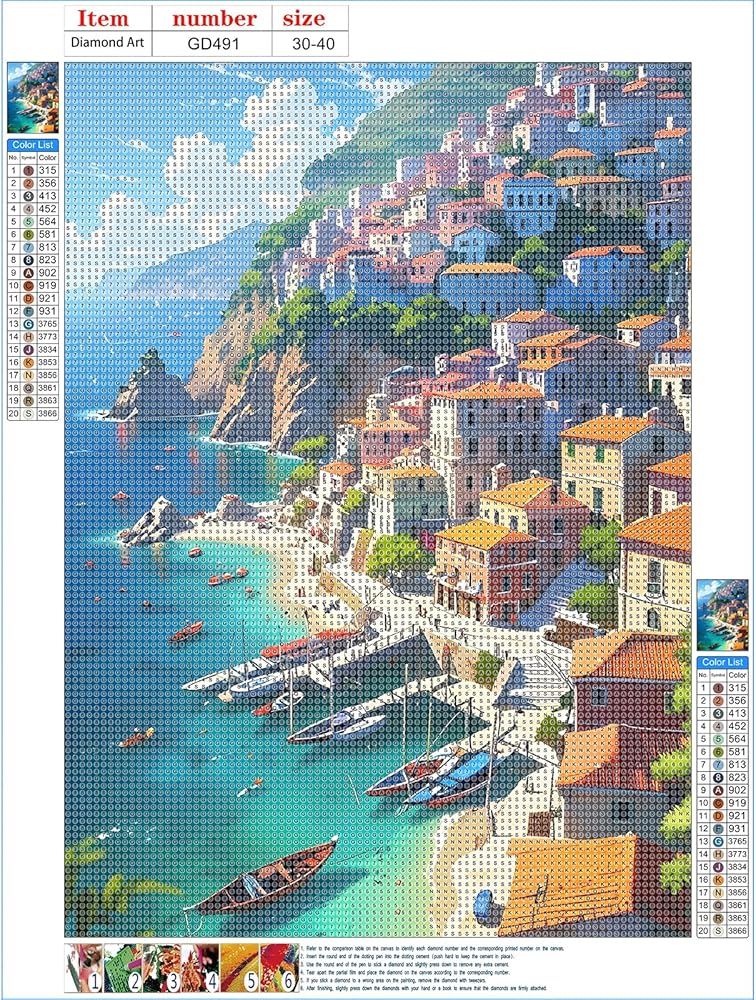 GDYEEH DIY قرية الصيد 5D الماس مجموعات الفن، جولة الحفر الكامل تألق المناظر البحرية الماس اللوحة الصورة، المناظر الطبيعية اللوحة بالأرقام مجموعات الفن للبالغين المبتدئين ديكور جدار المنزل 12x16 بوصة