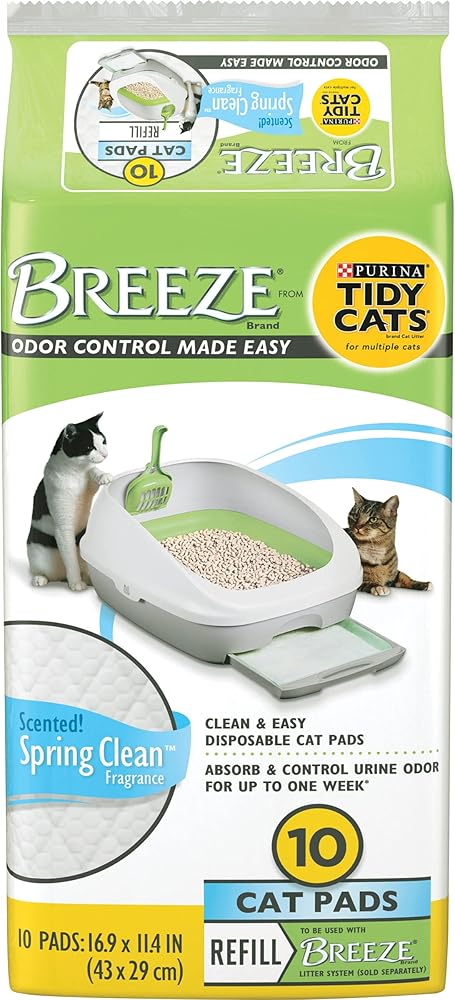 Fight strong odors and leave a fresh scent in your home with this Purina Tidy Cats BREEZE Spring Clean cat pads refill pack. Part of the Purina Tidy Cats BREEZE litter system (sold separately), these cat pads absorb urine and odors to keep your cat's litter area clean and inviting. Each of these cat pads for litter box odor control features a light spring fragrance. The disposable design makes it easy to clean your cat's litter system, so you can spend more precious time with your darling cat. With their convenient setup, these cat pad refills offer effortless installation and removal, helping you to keep your cat's litter area tidy and ready for use. Rethink your take on cat litter when you use these odor-absorbing refill pads with the innovative Purina Tidy Cats BREEZE litter system, and check off litter box cleaning from your pet parent to-do list. Place an order for Purina Tidy Cats cat litter pads today, and show your feline how much you care about her comfort.