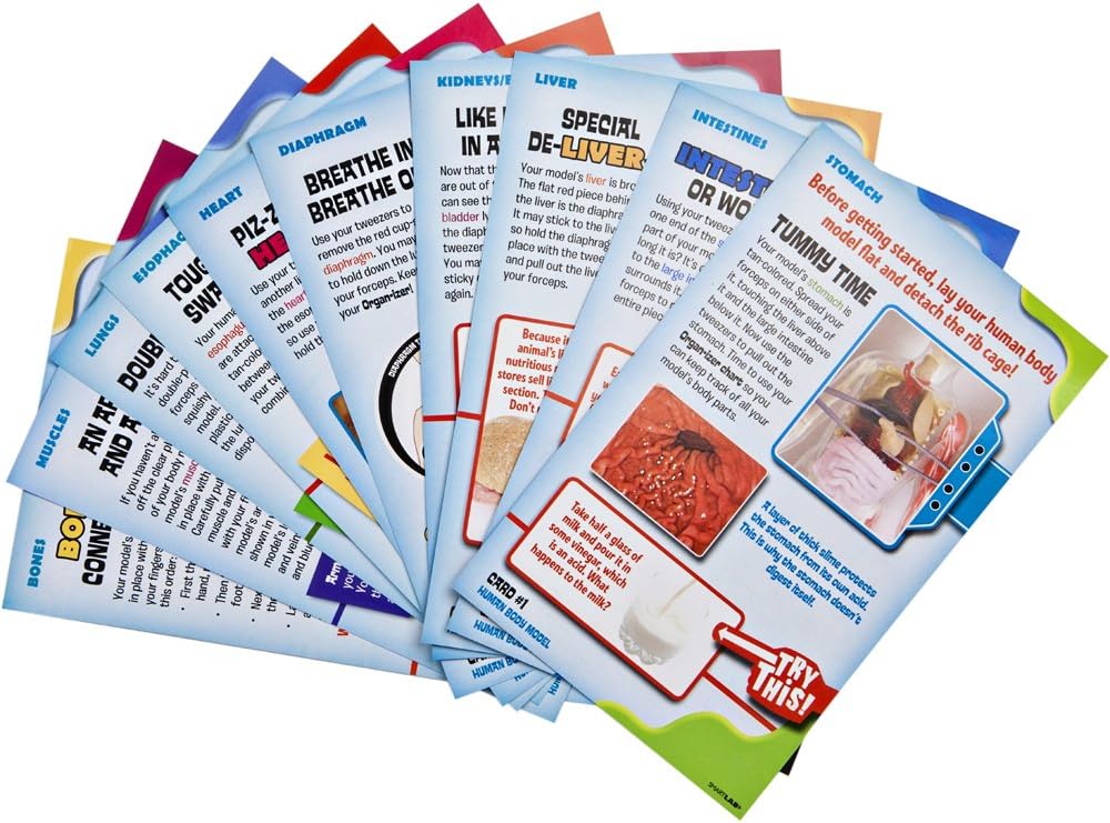 10 activity cards and 24-page illustrated book teach kids anatomy, showing them how the brain and body work together to keep you Walking, talking, breathing, and eating.