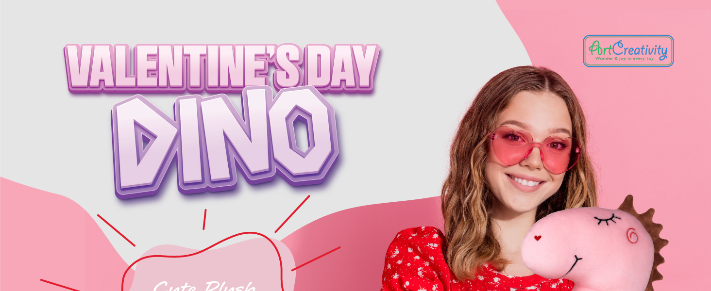 حيوان محشو على شكل ديناصور من القطيفة لعيد الحب من ArtCreativity - طوله 30.48 سم - ديناصورات لطيفة باللون الوردي الفاتح مع قلب أحمر - لعبة ديناصور وردية - هدايا عيد الحب لها