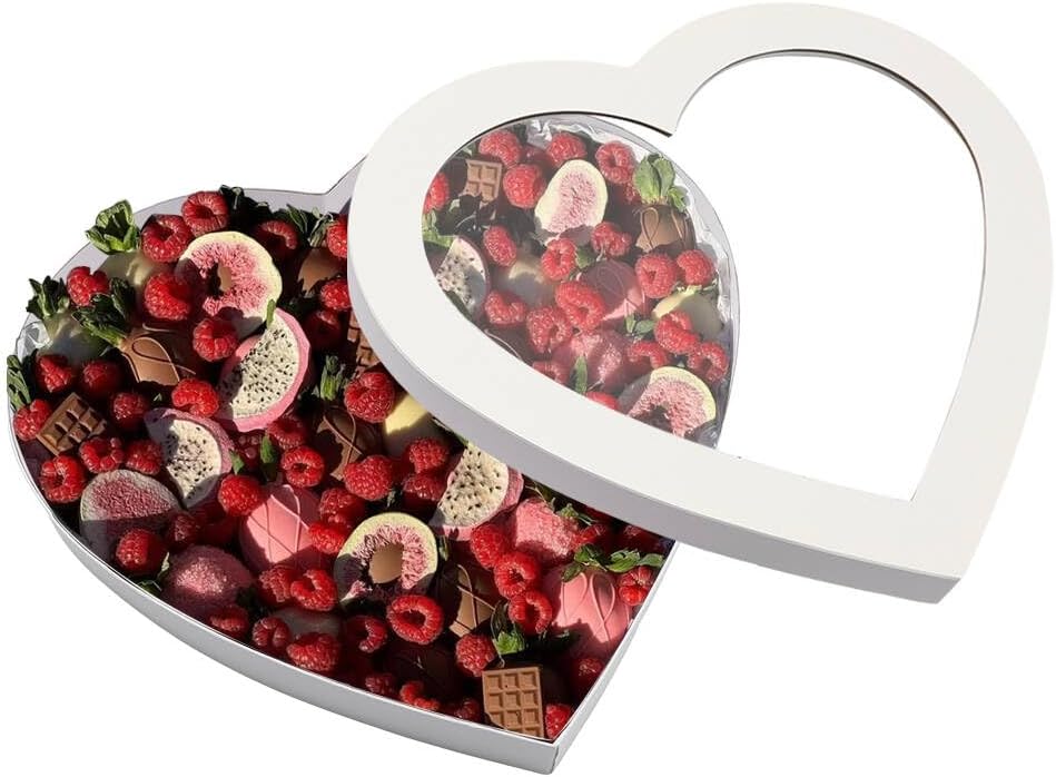 - صندوق هدايا فريد من نوعه: صندوق الهدايا هذا على شكل قلب مقاس 12.5 بوصة مع نافذة شفافة مثالي لتقديم الشوكولاتة أو الفراولة أو منتجات الفحم.