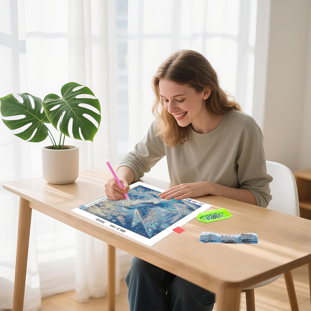 الطلاء بالماس: سيعمل الفن الماسي Starry Night للبالغين على تقليل مستويات التوتر والقلق عن طريق تحويل انتباهك من ضغط الحياة اليومي إلى نشاط سلمي ومهدئ. يمكن للرسم الماسي DIY تحسين القدرة العملية، وتقليل التوتر وتخفيف المشاعر، وتجربة شعور بالإنجاز، وتعزيز الثقة بالنفس وتنمية الصبر، ومناسبة للبالغين وكبار السن.