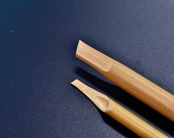 Pens/Aqlam: These pens have slit or tiny gap for ink flow on their nibs (they function as tiny ink reservoir for one dip and full flow to the end of the letter.) . Our pens are selected from strong and dry bamboo (doesn't contain water), it is difficult for the ink to seep into the bamboo fibers. Thats why it last you longer. The craft has passed on from one generation to me therefore these elements have been achieved after years of experience. We provide quality and endless support. The diameter, height and shape of the pens/aqlam are very cozy to use. With the addition of beautiful yellow natural color reed/bamboo adds an elegant impression to you, and of course it will add to your mood at work. No special maintenance or cutting, you just have to take care of it from damage like a fall causing the nib to break Wipe the nib with a wet tissue after use to prevent ink from accumulating Good material affects the quality and mood of the work