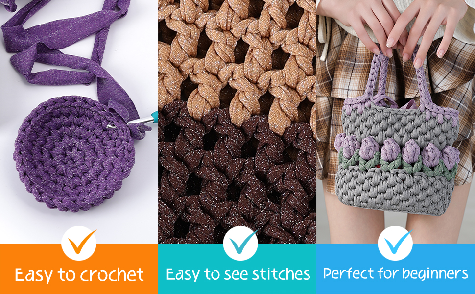 【تصميم صديق للمبتدئين】إن خيوط التي شيرت اللامعة الخاصة بنا للكروشيه قابلة للتمدد وناعمة وسهلة العمل معها. قل وداعًا للخيوط المتشابكة - ينساب غزل التيشيرت اللامع هذا للحياكة دون عناء من خلال الإبر والخطافات. يعمل تصميمه بعرض 3 سم وتعريف الغرزة الواضح على تبسيط عملية الحياكة/الحياكة، مما يقلل الضغط على اليدين، مما يجعله غزلًا سهلاً للمبتدئين أو الحرفيين ذوي الخبرة لإنشاء تصميمات معقدة ويضمن نتائج ذات مظهر احترافي. كما ستعزز أوقات الانتهاء السريعة ثقتك ورضاك.
