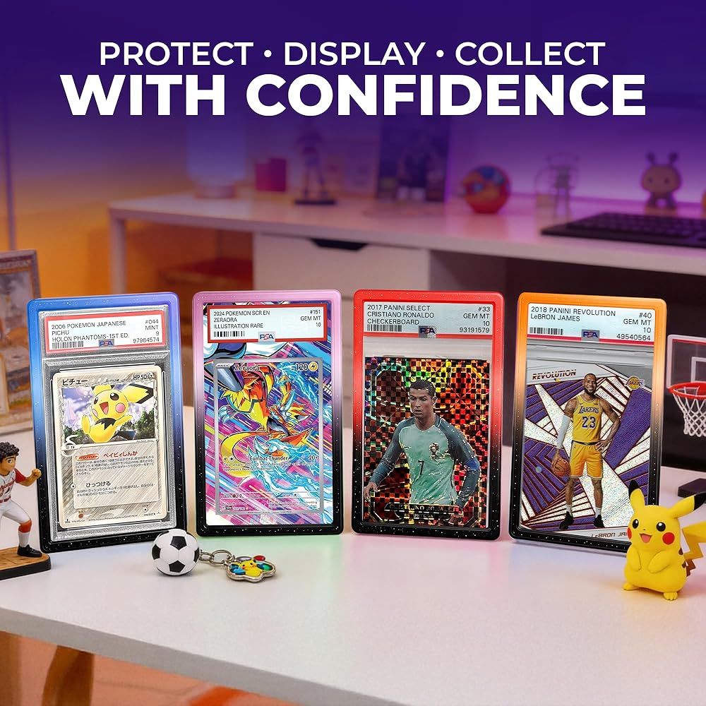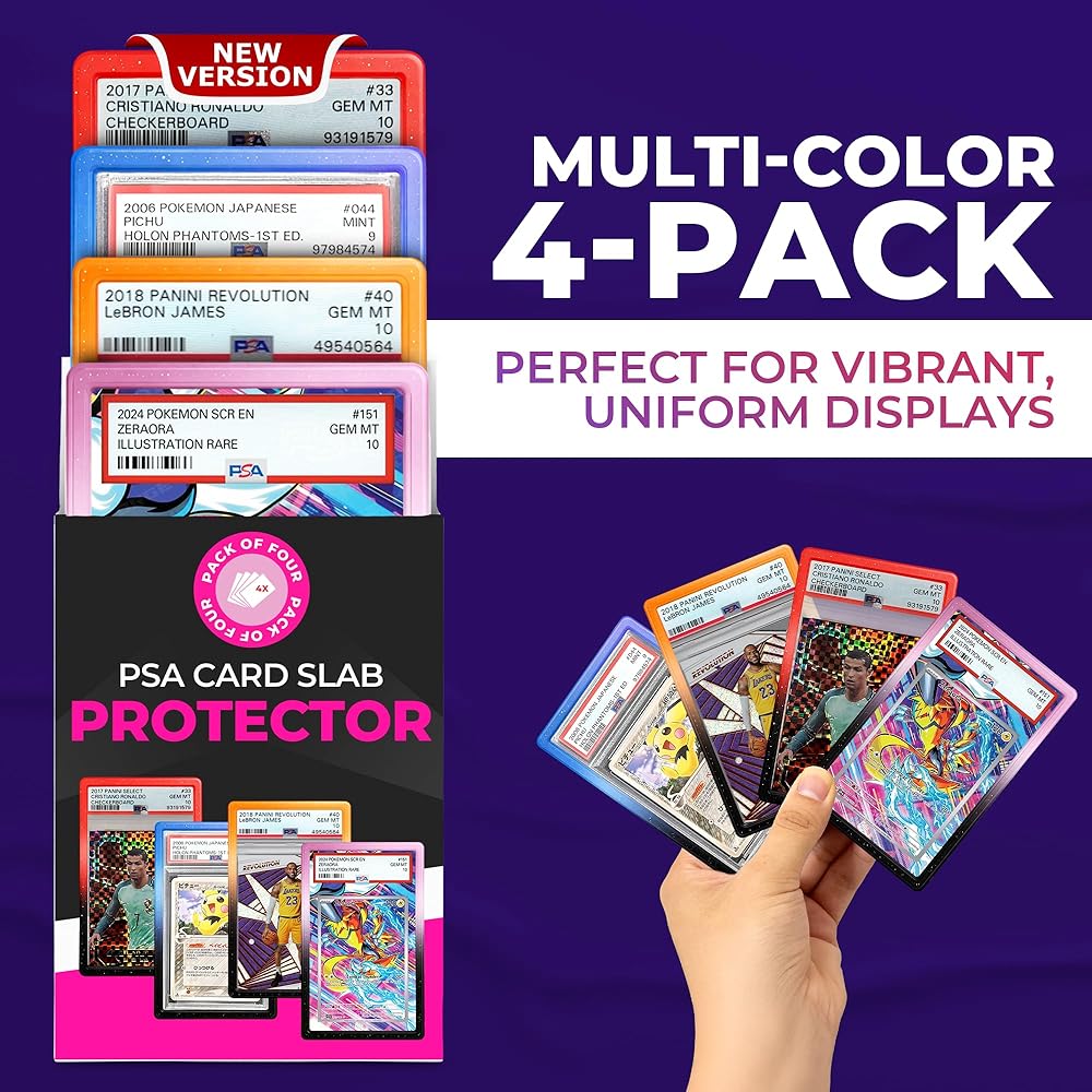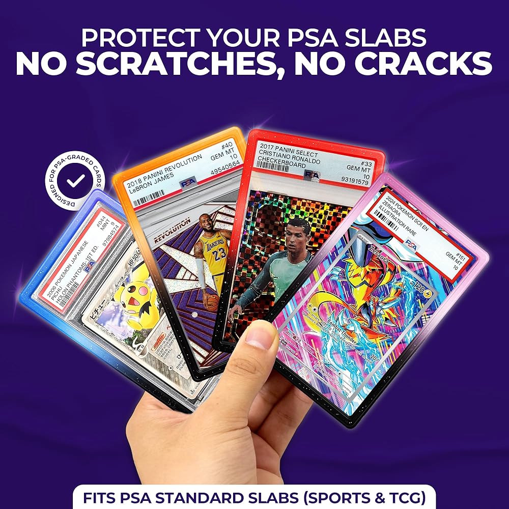 ✅ PRODUCT DESCRIPTION (A+ Content style — optimized for SEO + conversion) Upgrade the protection and display of your PSA graded cards with this premium 4-Pack TPU Slab Guard Protector Case. Designed exclusively for PSA Standard Size slabs, each bumper sleeve delivers a perfect, secure fit that enhances both protection and presentation. Made with high-grade TPU, these slab protectors offer shock absorption, scratch resistance, and crystal-clear transparency, ensuring your valuable cards stay safe from accidental drops, storage wear, and dust exposure. The Gradient Glitter Edition adds a visually striking shimmer effect that elevates the look of your slabs during display. Collectors can choose between multi-color variety packs for vibrant setups for a clean, uniform appearance. Easy to install and remove, these protectors are ideal for collectors, investors, traders, and anyone showcasing PSA slabs at home or at conventions. Whether you're protecting sports cards, Pokémon, TCG, or rare vintage PSA-graded pieces, these slab guards are engineered to keep your collection pristine and stunning.