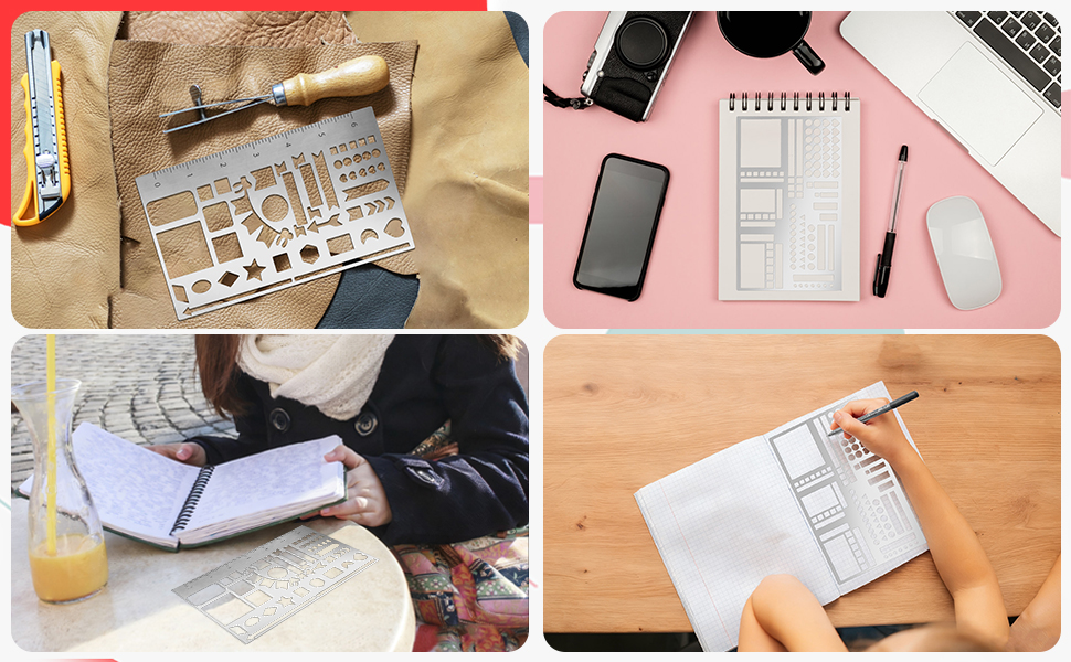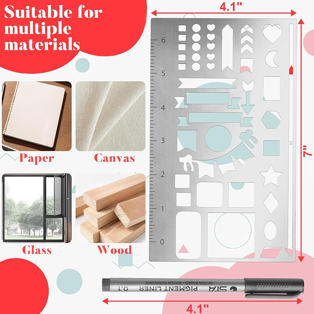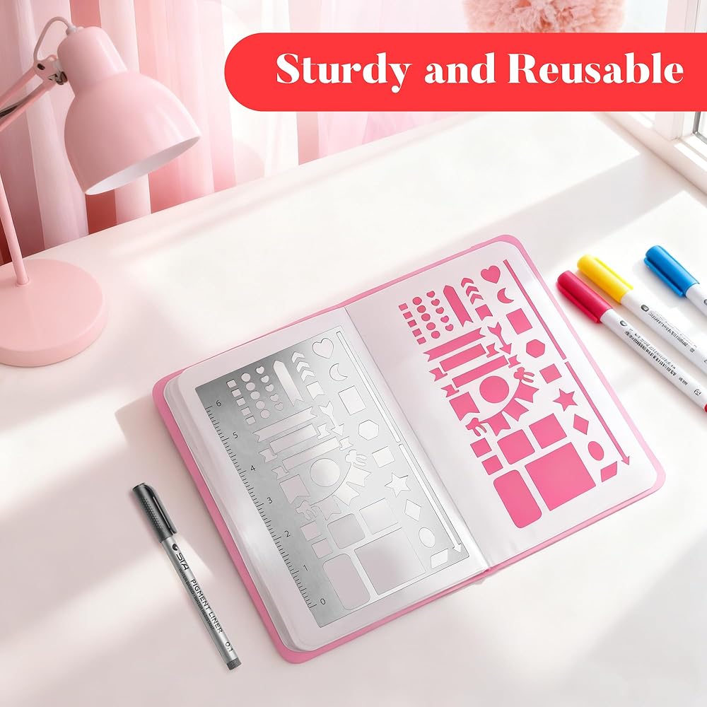 [سهل الاستخدام لجميع مستويات المهارة] ما عليك سوى وضع الاستنسل المعدني على صفحتك وتتبعه باستخدام قلم أو قلم رصاص. تضمن الحواف الناعمة الراحة والأمان أثناء الاستخدام. بعد كل جلسة، يمكنك تنظيف الاستنسل بسهولة بالماء والقماش، مما يبقيه جاهزًا لمشروع التخطيط أو كتابة اليوميات التالي.