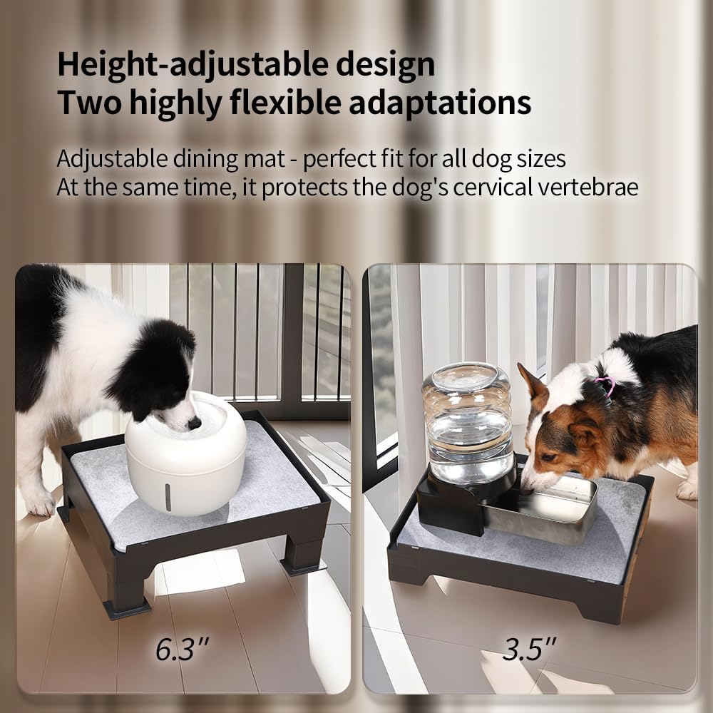 حامل تغذية الحيوانات الأليفة ذو حصيرة الدياتوميت - متوافق مع معظم أوعية الكلاب والمغذيات الأوتوماتيكية، ومحطة طعام مرتفعة مع أقدام مضادة للانزلاق وارتفاع قابل للتعديل يمتص الانسكابات للحفاظ على منطقة الوعاء نظيفة