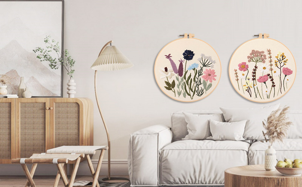 مجموعة أدوات الخياطة الكاملة بالإبرة: تتضمن طوق تطريز مقاس 8 بوصات، وقماش مطبوع مسبقًا (حوالي 12 × 12 بوصة)، وخيوط، وإبر، وتعليمات باللغة الإنجليزية، وأدوات الملحقات الأخرى