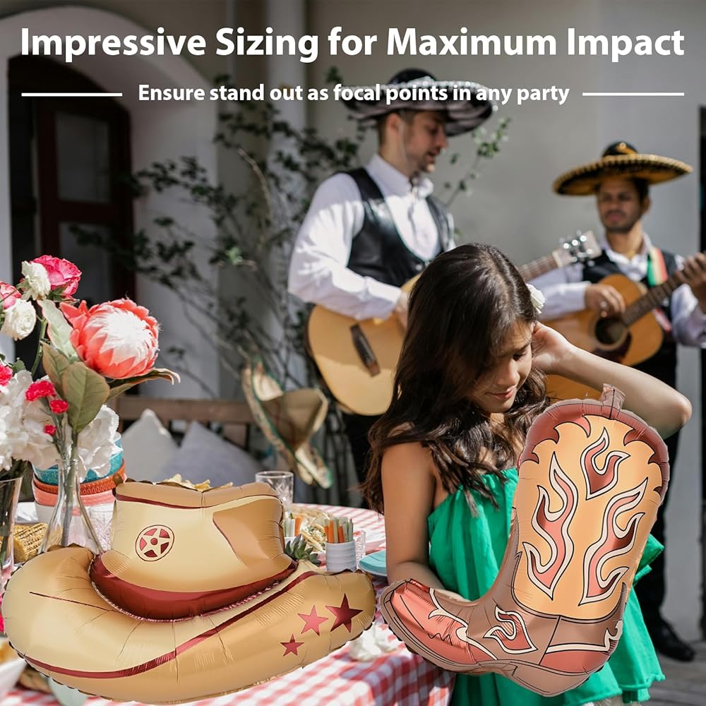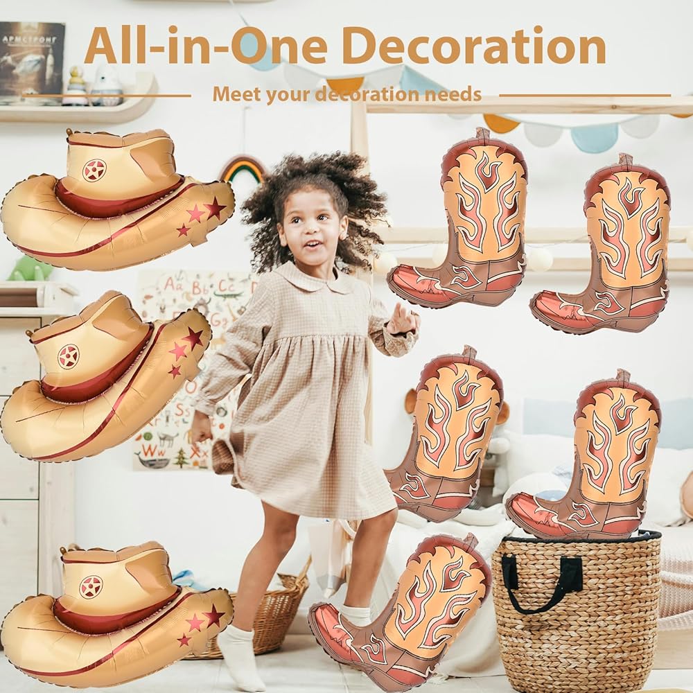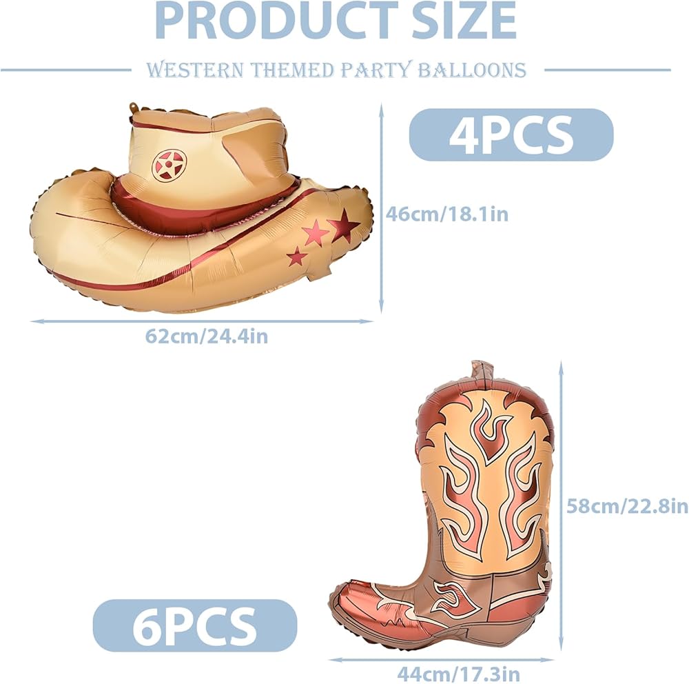 All-in-One Decoration Solution: This 10pcs set, with 4 cowboy hat balloons and 6 cowboy boots balloons, provides everything you need for a stunning western-themed party. Whether you're creating an arch or decorating different areas, it's a convenient way to achieve a cohesive and impressive look