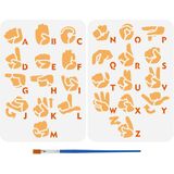 FINGERINSPIRE 2 قطعة استنسل رسم أبجدي للغة الإشارة مع قطعة واحدة من فرشاة طلاء بلاستيكية مقاس 8.3x11.7 بوصة قابلة لإعادة الاستخدام 26 استنسل حروف أبجدية للرسم على أثاث الحائط من القماش الخشبي ديكور المنزل بنفسك in Kuwait
