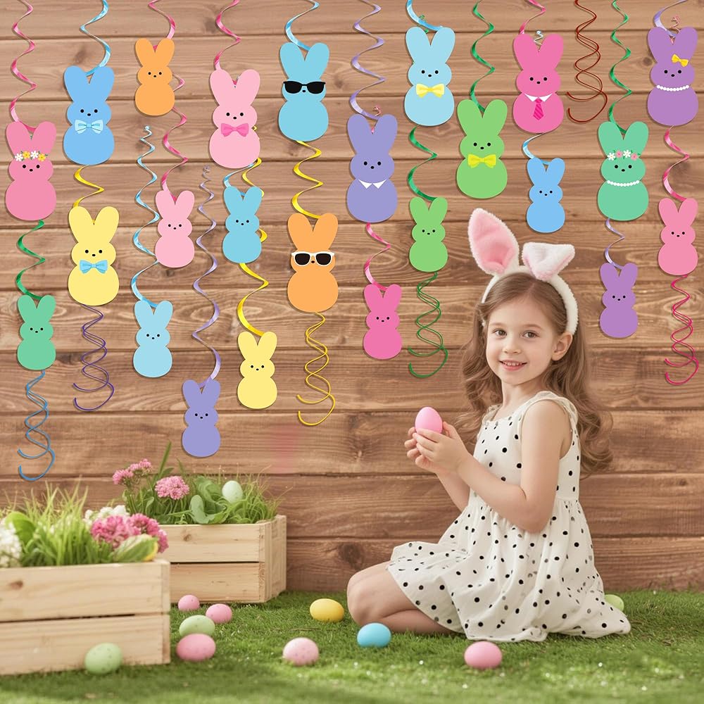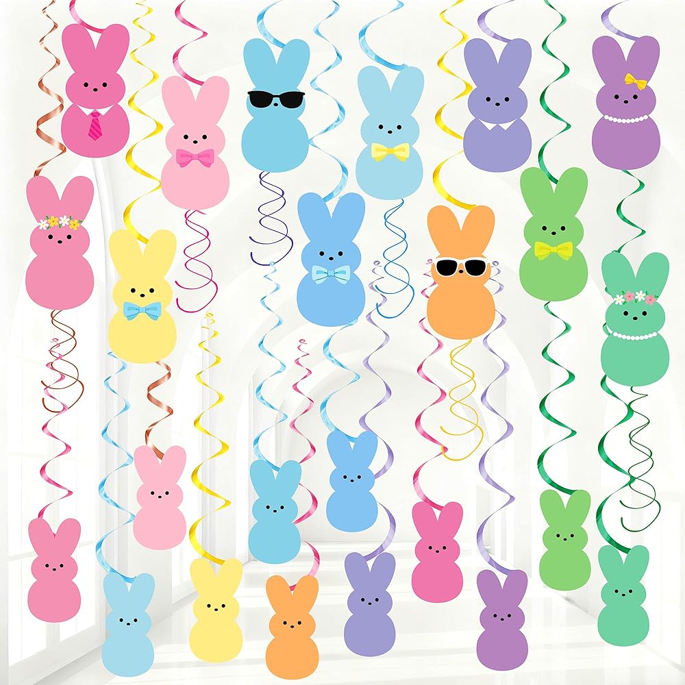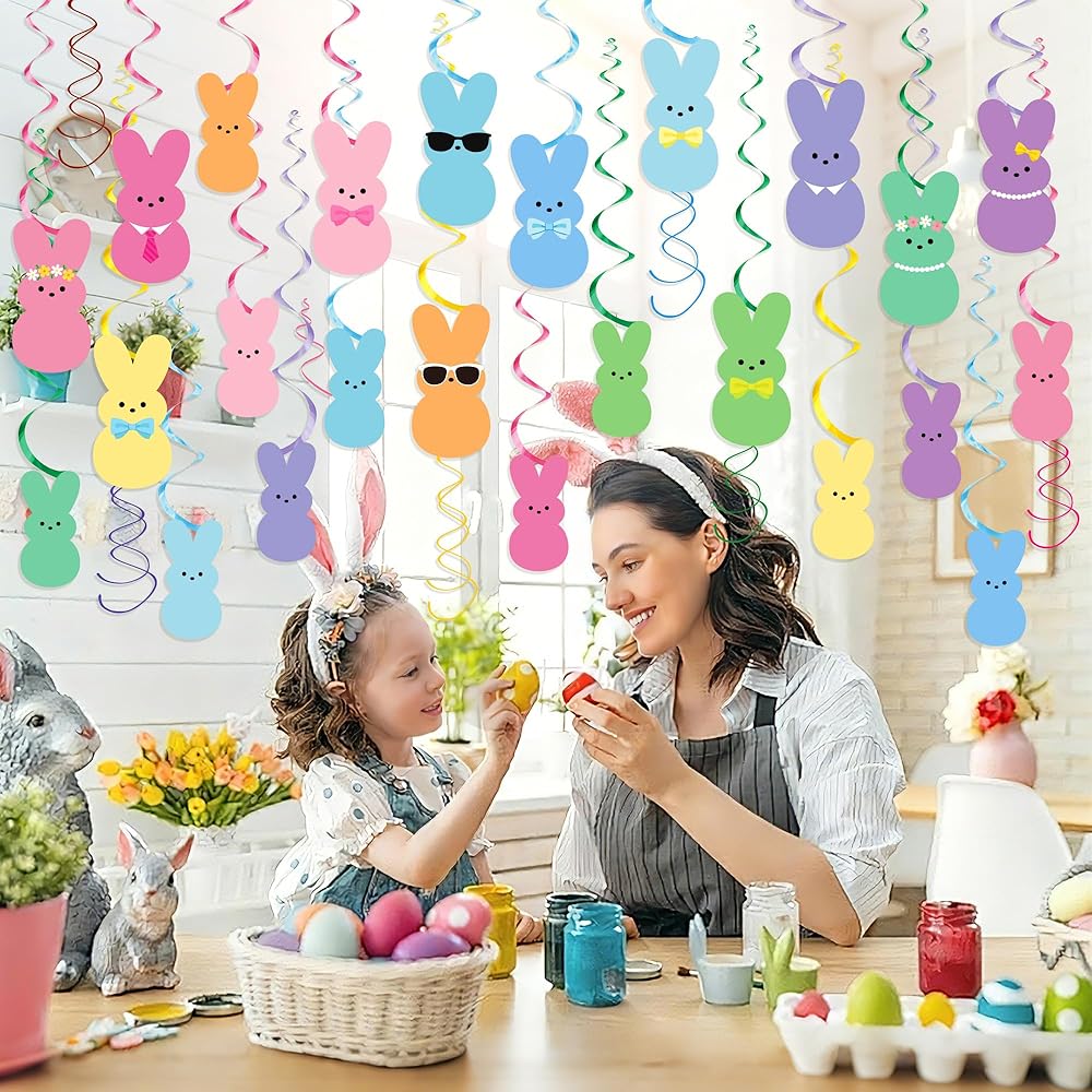 30 قطعة من زينة عيد الفصح المعلقة، زينة عيد الفصح المعلقة على شكل أرنب للمكتب، زينة معلقة لسقف عيد الفصح، زخارف معلقة على شكل دوامات للمنزل والمدرسة والفصول الدراسية والمكتب وديكور عيد الفصح