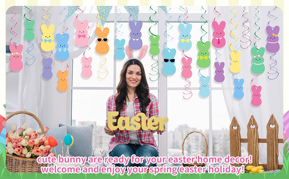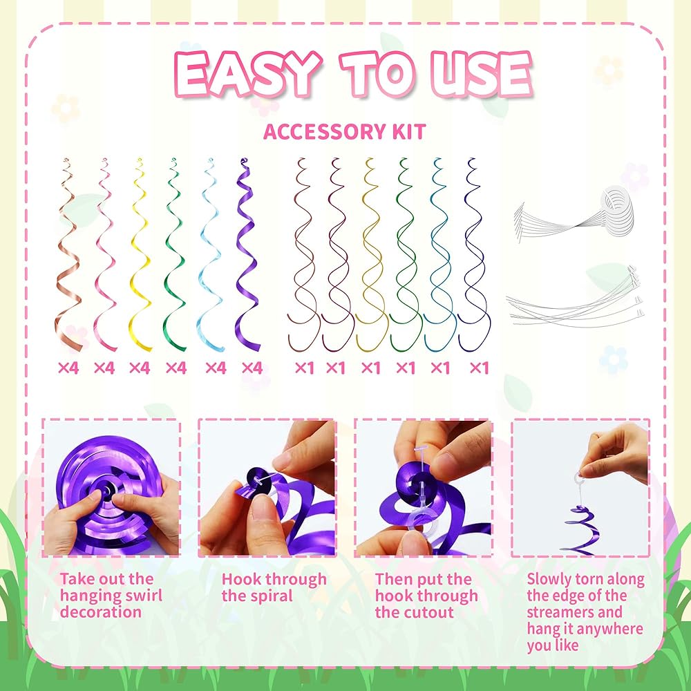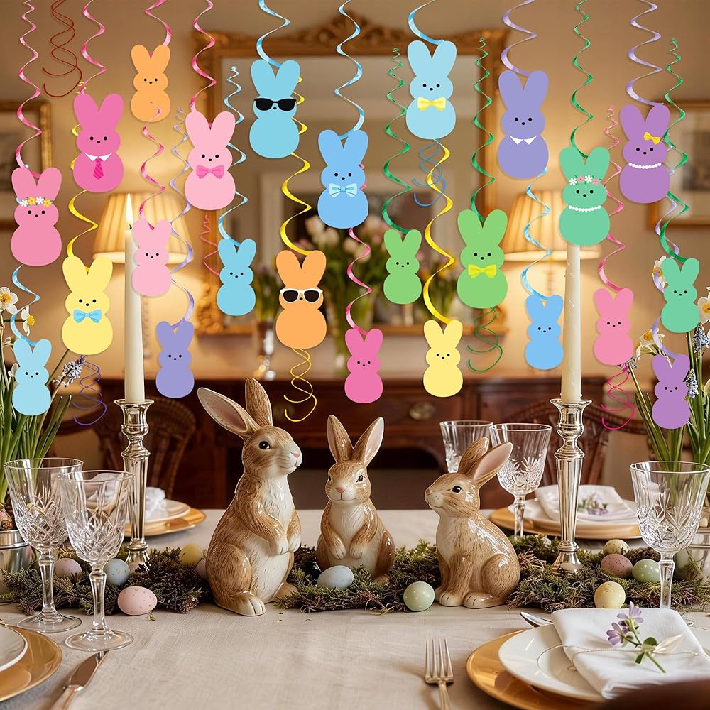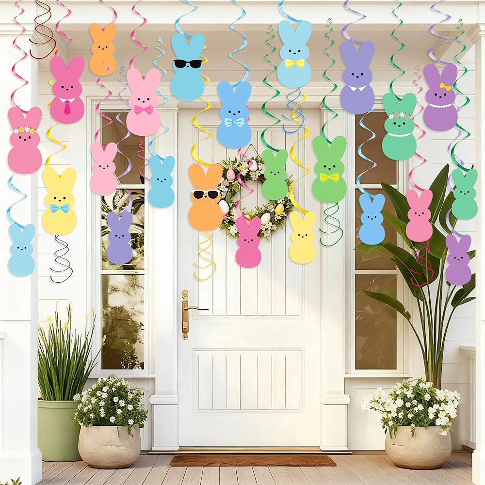 30 قطعة من زينة عيد الفصح المعلقة، زينة عيد الفصح المعلقة على شكل أرنب للمكتب، زينة معلقة لسقف عيد الفصح، زخارف معلقة على شكل دوامات للمنزل والمدرسة والفصول الدراسية والمكتب وديكور عيد الفصح