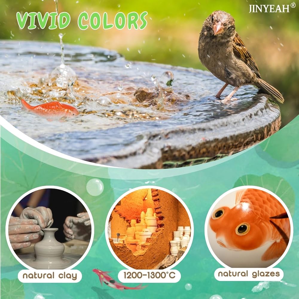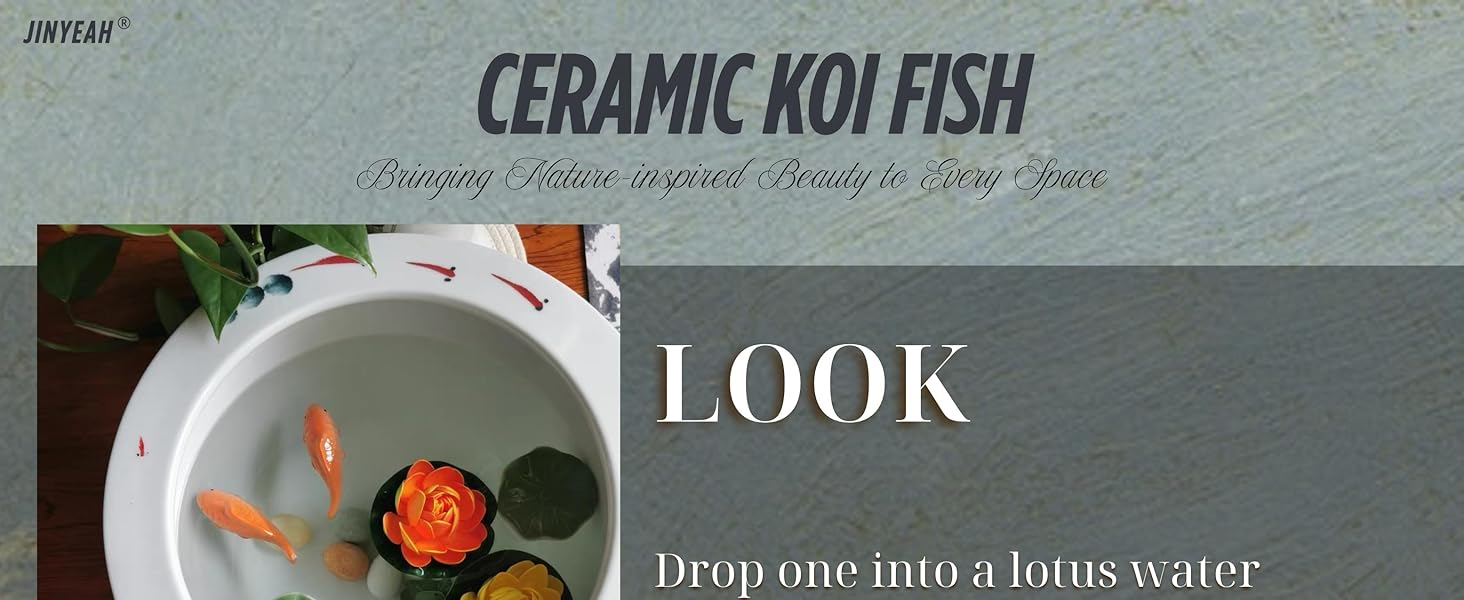 【ألوان زاهية - حرفية الصقيل الصينية التقليدية】سمك JINYEAH koi مصنوع من الطين الطبيعي والزجاج من جينغدتشن، ويتم تسخينه في درجات حرارة عالية تصل إلى 1200-1300 درجة مئوية لمدة 24 ساعة تقريبًا. خلال هذه العملية، يذوب الطلاء الزجاجي ويلتصق بشكل وثيق بجسم السيراميك، مما يشكل سطحًا ناعمًا ولامعًا وذو ألوان زاهية. تبدو الأسماك نابضة بالحياة ونابضة بالحياة، وقادرة على الطفو في الماء إلى أجل غير مسمى دون أن تتلاشى