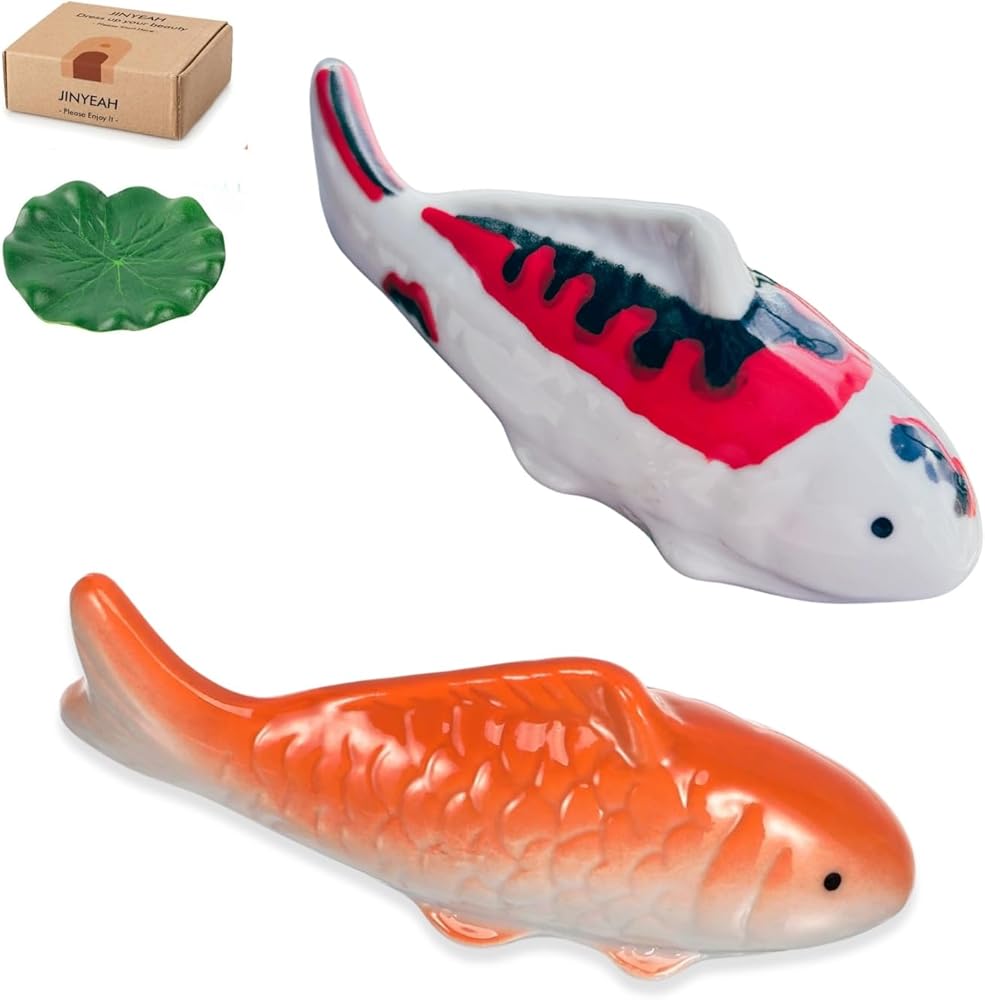 تفاصيل المنتج」تتضمن العبوة قطعتين من الأسماك العائمة المصنوعة من السيراميك. حجم السمكة 4.0 × 1.4 بوصة (10 × 4 سم)