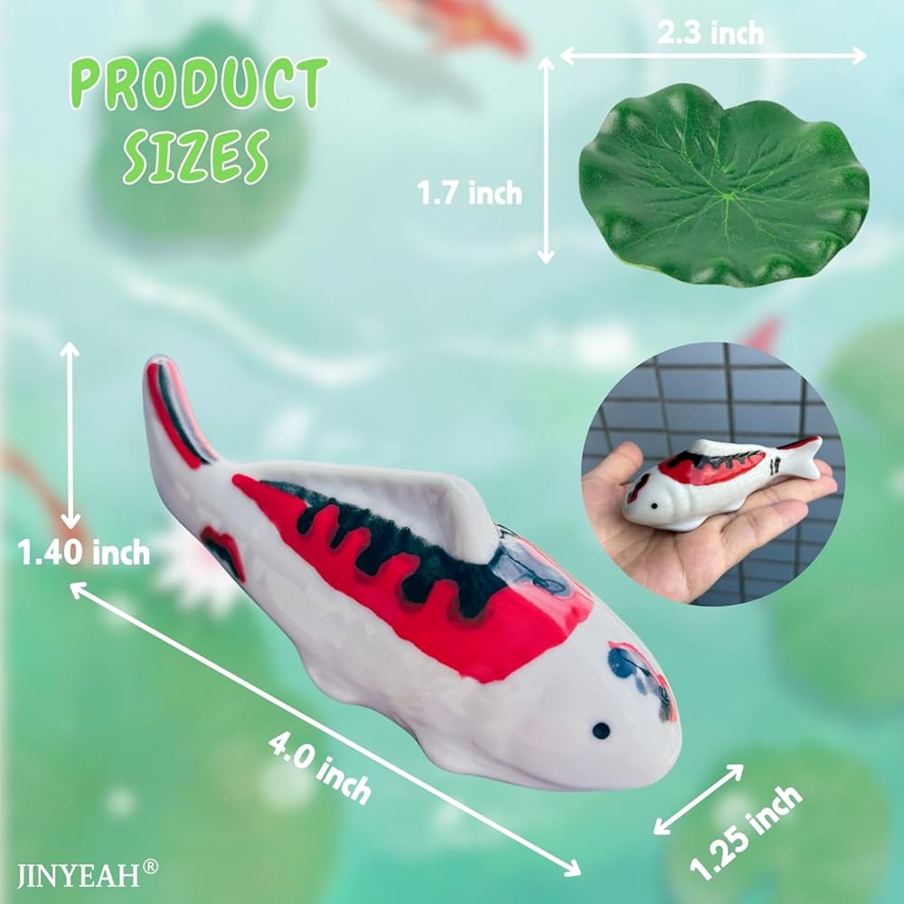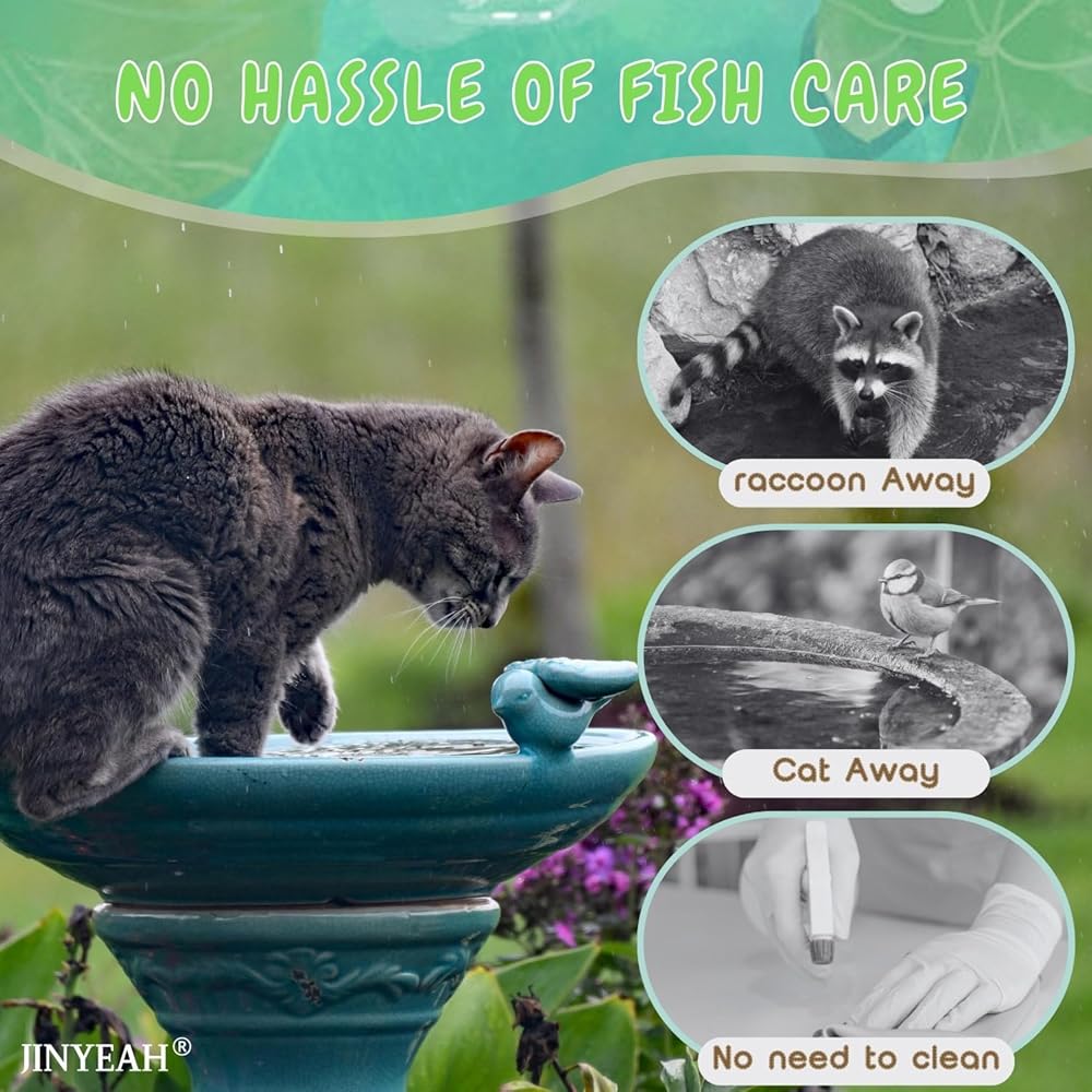 【لا توجد متاعب في العناية بالأسماك】لا داعي للقلق بشأن القطط أو الراكون التي تنتزع الأسماك الخزفية من النافورة أو حمام الطيور، ولا حاجة لإطعامها أو تنظيف الماء.