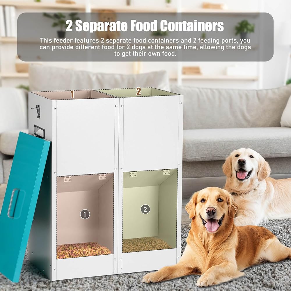 2 حاوية طعام منفصلة: يتميز جهاز تغذية الكلاب التلقائي المزدوج هذا بحاويتين منفصلتين للطعام ومنفذين للتغذية، ويمكنك توفير طعام مختلف لكلبين في نفس الوقت، مما يسمح للكلاب بالحصول على طعامهم الخاص.