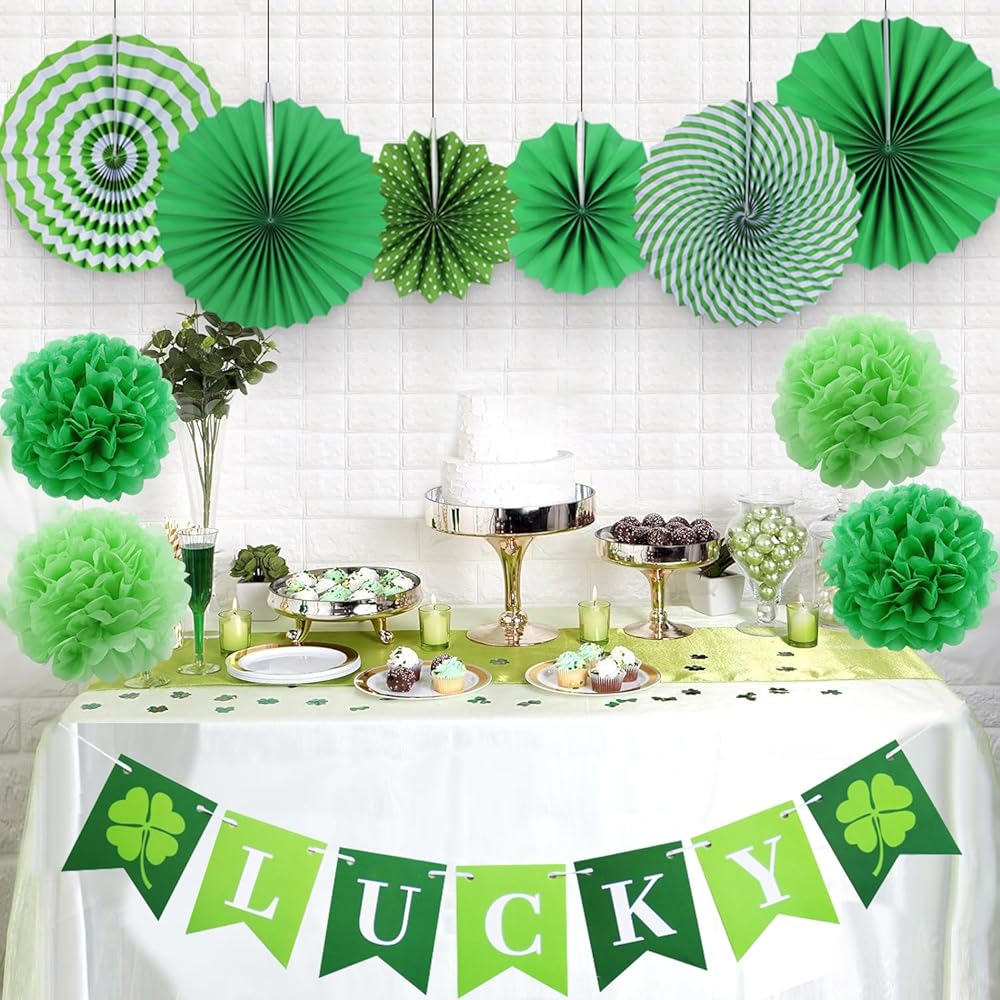 Themed Design: We've taken care to infuse every piece with a classic green color and iconic shamrock elements. These decorations capture the essence of St. Patrick's Day and set the perfect atmosphere for your celebration.