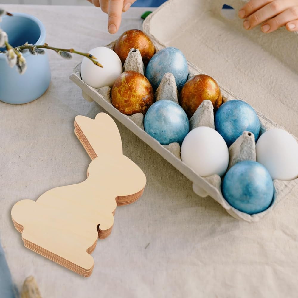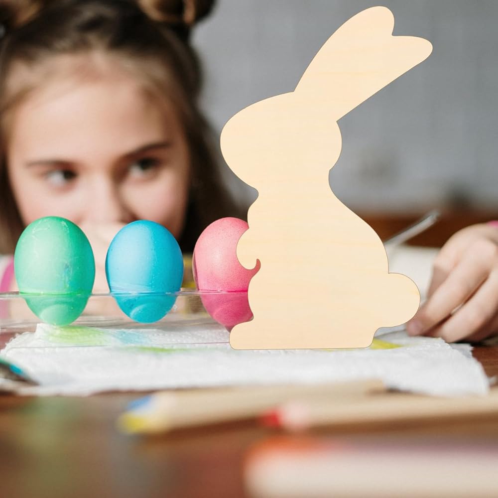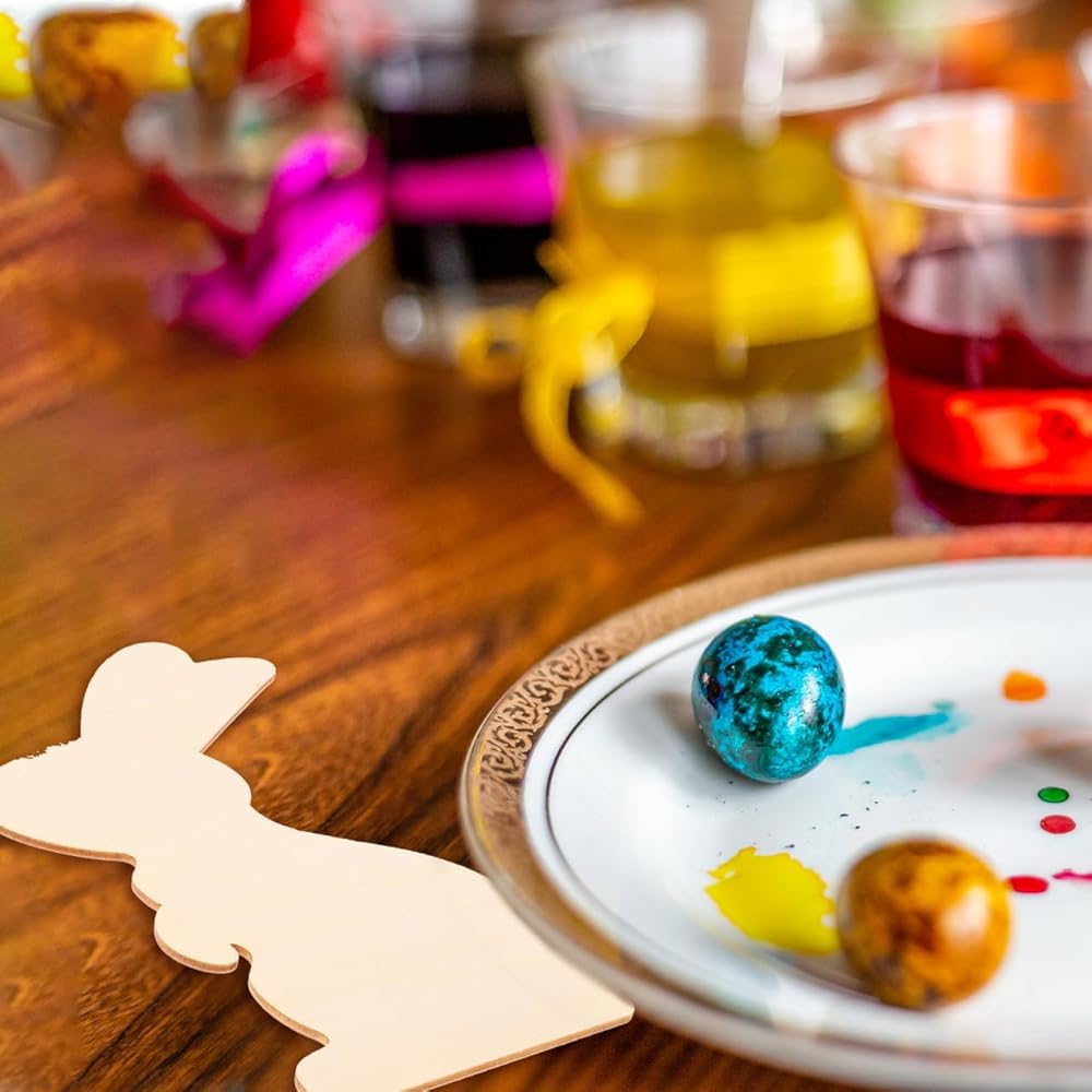 مثالية للصياغة اليدوية: توفر هذه الأرانب الخشبية غير المكتملة قماشًا فارغًا للتعبير الإبداعي مما يتيح لك التخصيص باستخدام أقلام الطلاء أو الزخارف لإنشاء ديكورات عيد الفصح الفريدة أو الهدايا للأصدقاء والعائلة