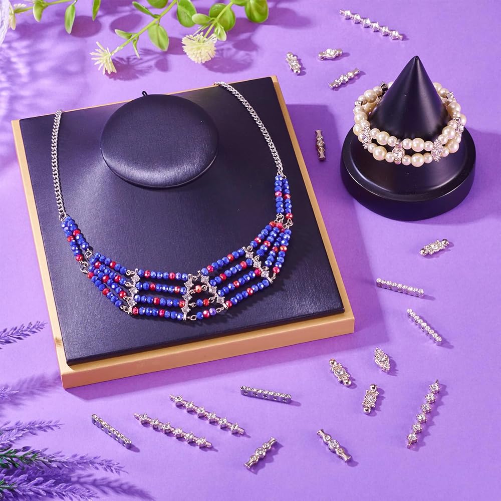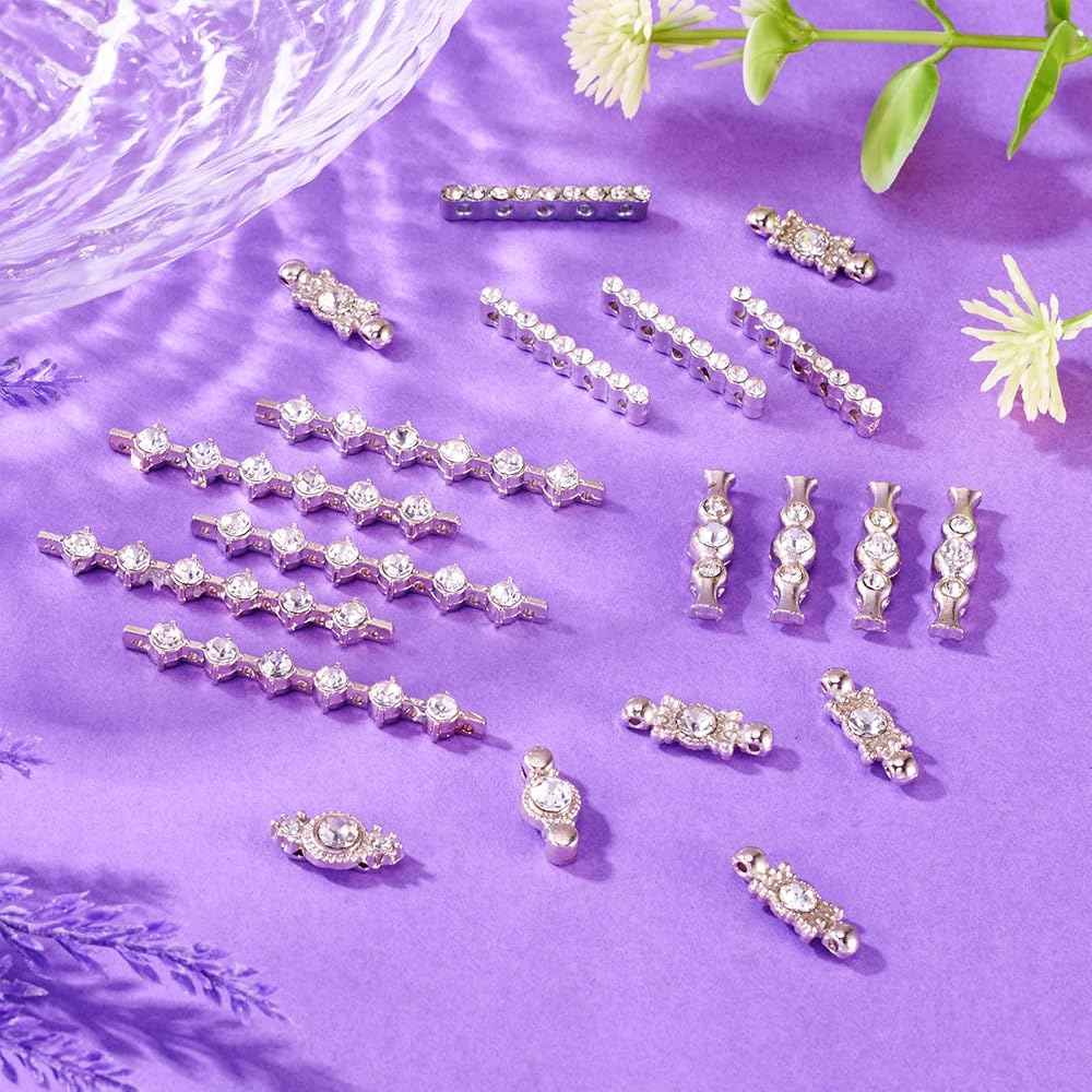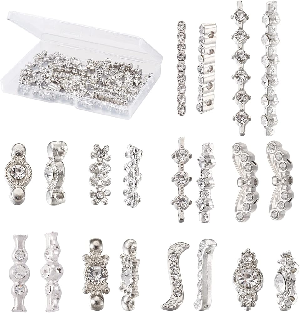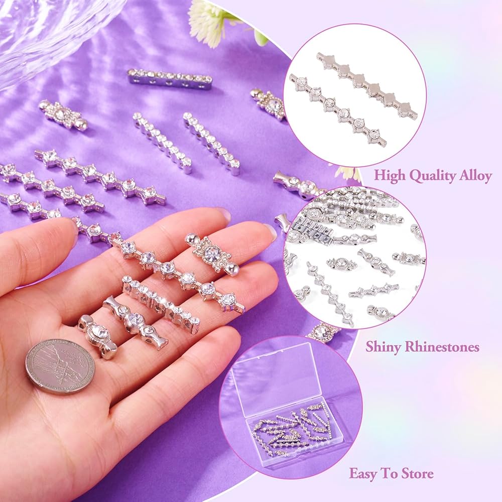 50Pcs 10 Style Alloy Bar Spacers, Alloy Grade A Rhinestone Spacers, Metal Alloy Multi-Strand Links, Alloy S-Shape Rhinestone Spacers Bars, Platinum