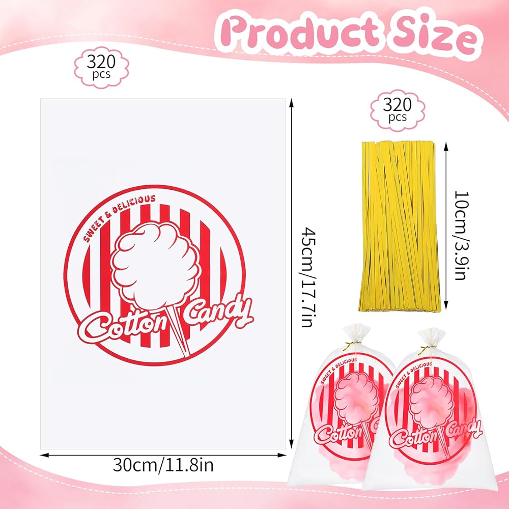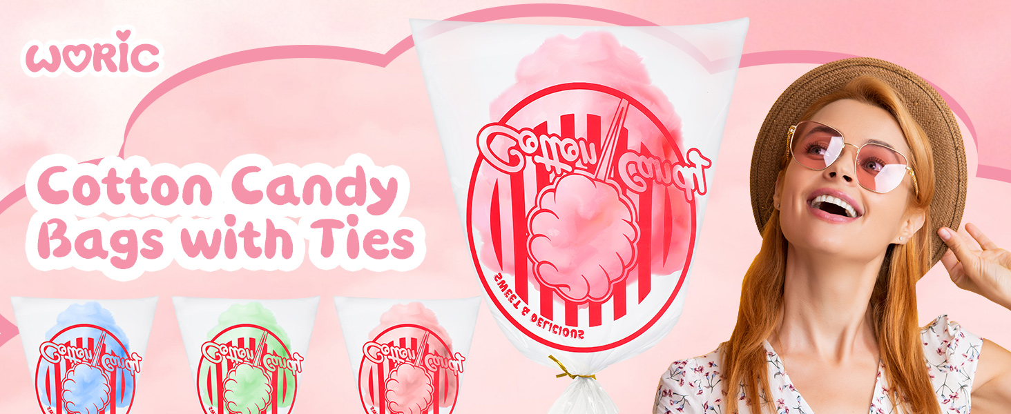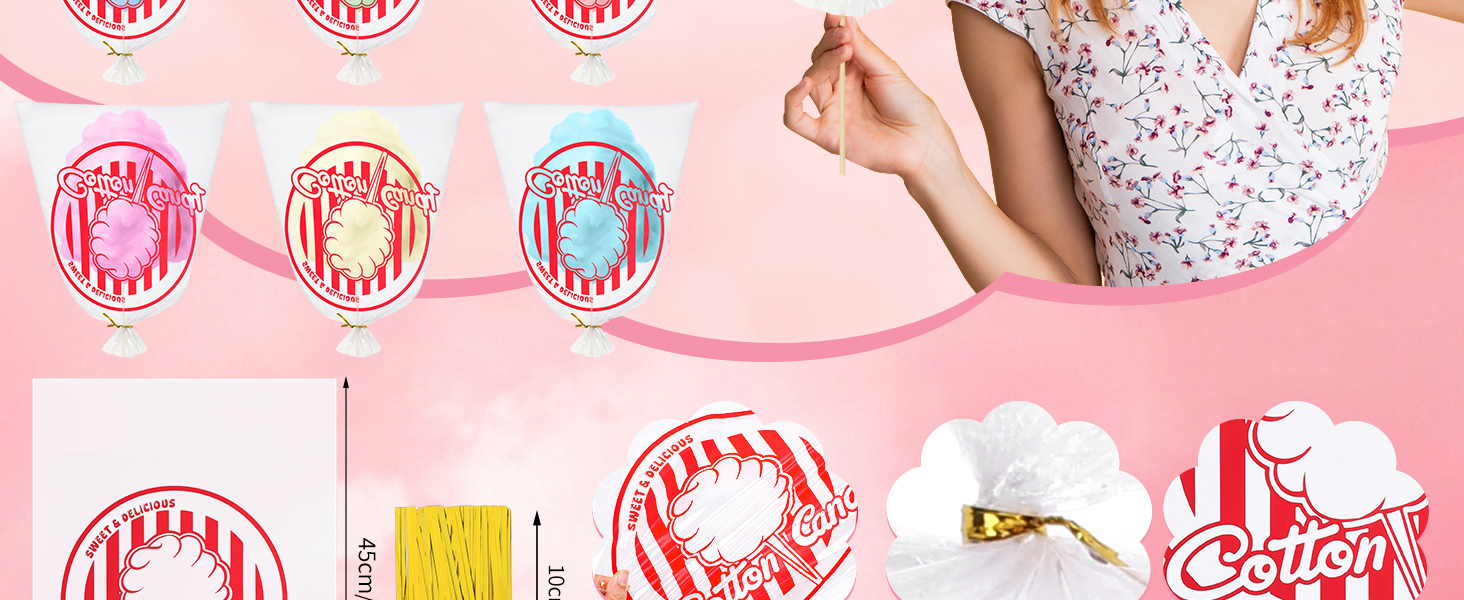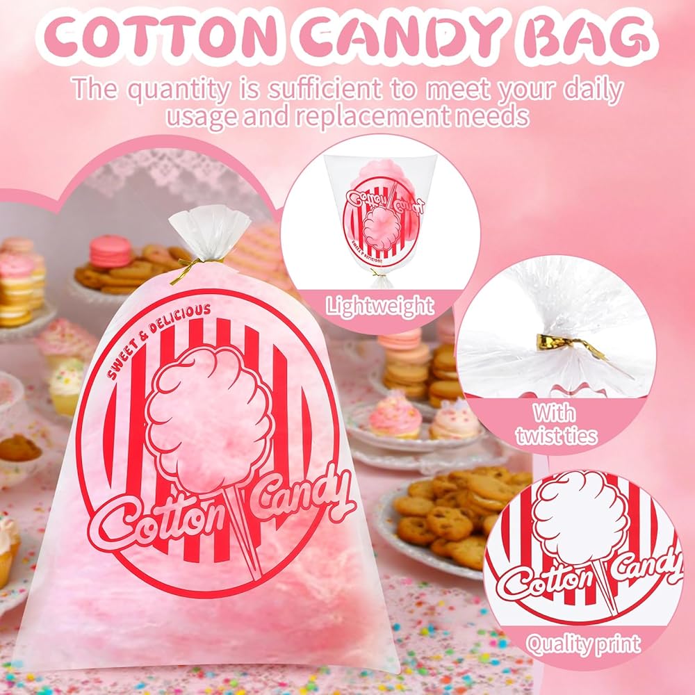 【سهلة الاستخدام】تأتي هدايا حفلات حلوى القطن مع ربطة عنق ملتوية لإغلاق آمن وسهولة النقل، مما يضمن بقاء القطن الخاص بك منتعشًا ومحميًا، المادة مصنوعة من البلاستيك، وهو مقاوم للتمزق والتآكل، وليس من السهل أن ينكسر أو يبهت.