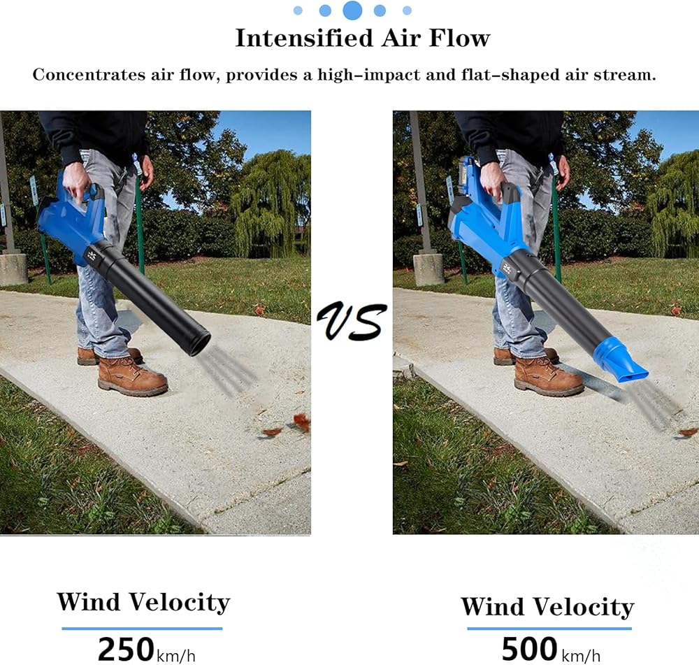 4. Use the nozzle to improve the performance of your Kobalt 24v leaf blower, utilizing a flat stream of compressed air to help blow through tighter areas such as cars, trucks, tool boxes, etc. As the same time, you can also rotate the nozzle to control airflow direction, then it would blow to anywhere you need.