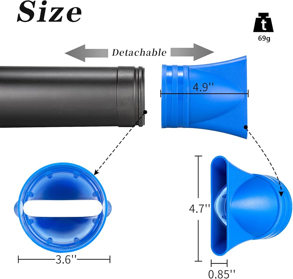 3. Our product is made of high-quality ABS plastic, and there is a positioning ring inside, which is convenient for the installation and fixation. Only need put the nozzle on the blower barrel and push it directly till to stuck. In addition, you can twist it first, it would be easier to disassemble, so that the whole process does not need any tools.