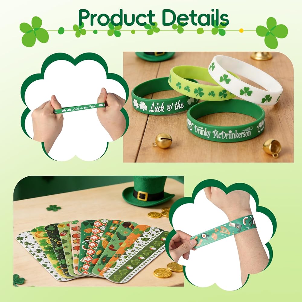 مجموعة هدايا عيد القديس باتريك الكاملة - تتضمن هذه الحزمة القيمة الرائعة كل شيء لاحتفالك: قلادتين كبيرتين على شكل البرسيم، وقلادتين على شكل كوب بيرة، و8 قلادات شامروك، و8 قلادات من خيوط الخرز، و10 أساور من السيليكون، و10 أساور تصفيق، و10 أكواب شامروك، و2 ورقة من 50 قطعة من ملصقات الوشم (إجمالي 100). مثالي للمجموعات الكبيرة والفصول الدراسية والمسيرات وأحداث عيد القديس باتريك