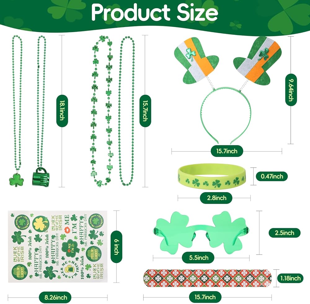 62 قطعة من إكسسوارات يوم القديس باتريك عصابات الرأس إكسسوارات خرز شامروك، St. مجموعة إكسسوارات عيد القديس باتريك هدايا الحفلات والنظارات والأساور وملصقات الوشم ومستلزمات المسيرات الديكورية