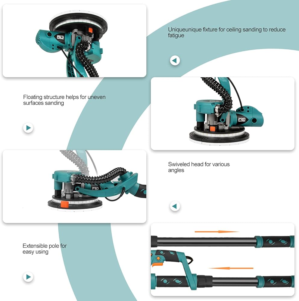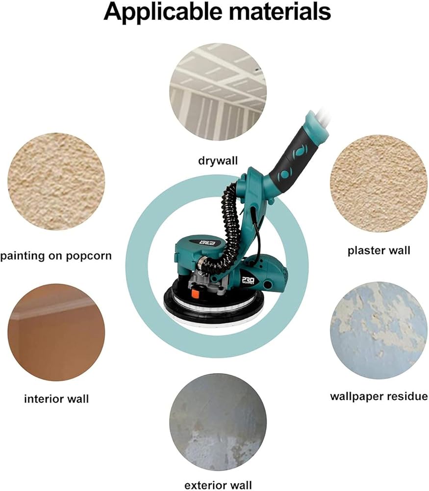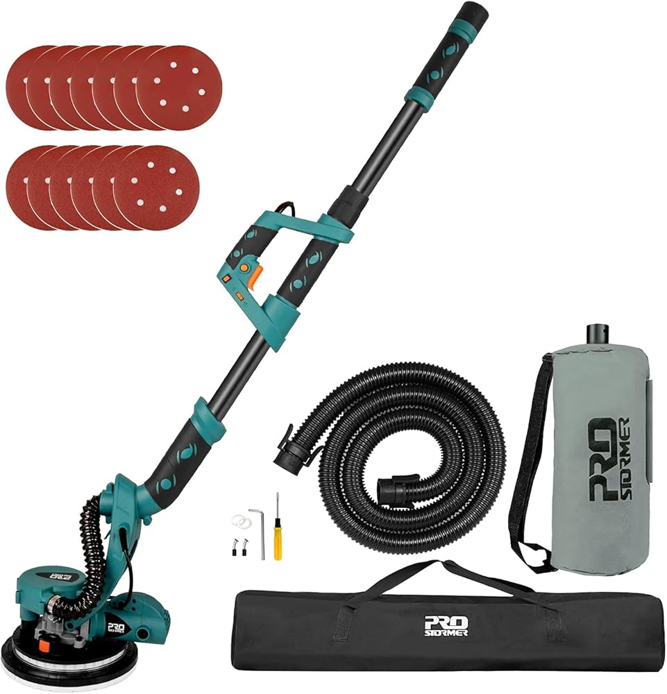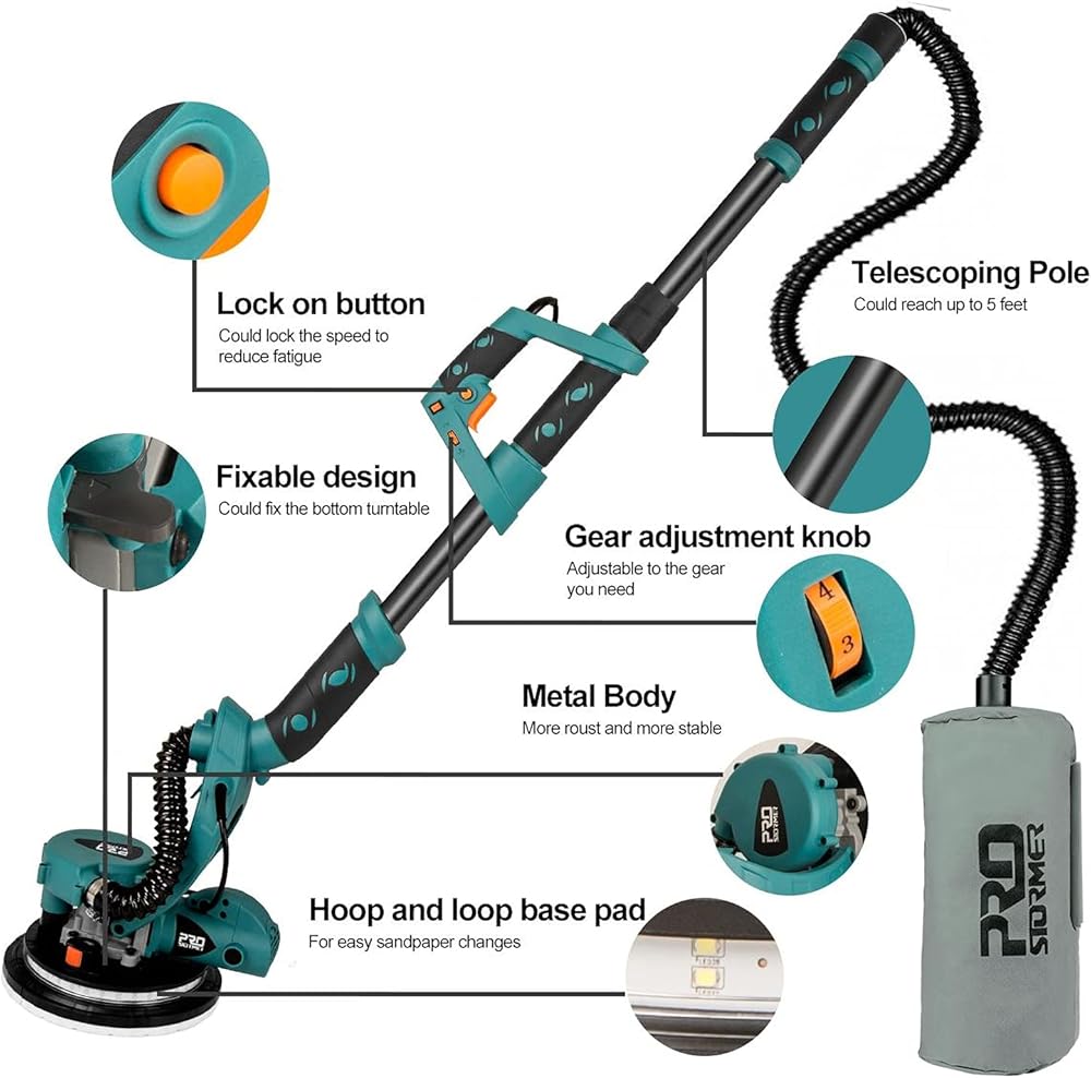 🔥【6 سرعات مختلفة ومفتاح قفل】تتميز ماكينة صنفرة الحوائط الجافة الكهربائية Prostormer بـ 6 سرعات مختلفة وفقًا لتطبيقات مختلفة. يتيح مفتاح القفل الحفاظ على سرعة واحدة دون الضغط باستمرار لتقليل عبء العمل وأكثر ملاءمة للاستخدام.