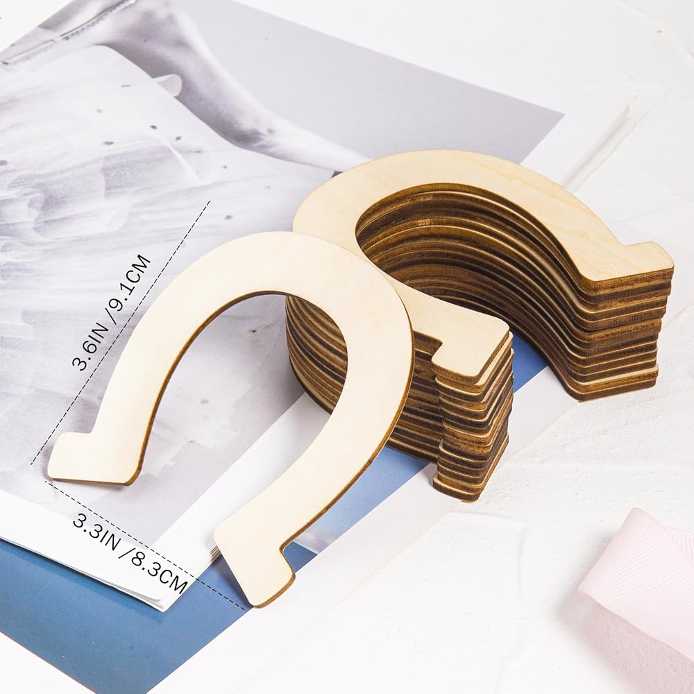 These unfinished wooden horseshoe cutouts are designed for creative crafting and home decoration. Whether you're making rustic wall art, farmhouse-style signs, or Western-themed decorations, these wooden horseshoes offer the perfect touch. Made from high-quality wood, they are durable, easy to customize, and perfect for a variety of DIY projects.