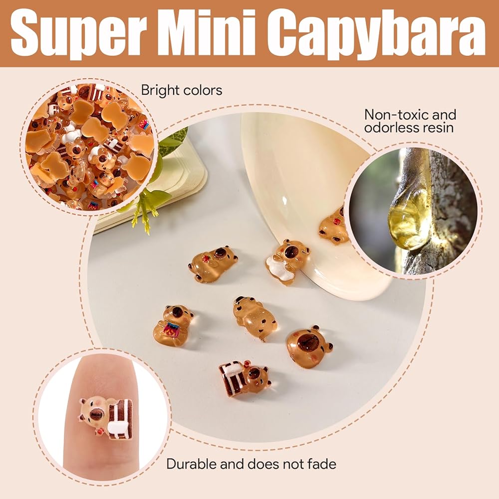Nail artists will love the animal nail charms and trendy western-style nail charms options for themed manicures, while collectors can arrange them as unique capybara accessories on desks or car dashboards.