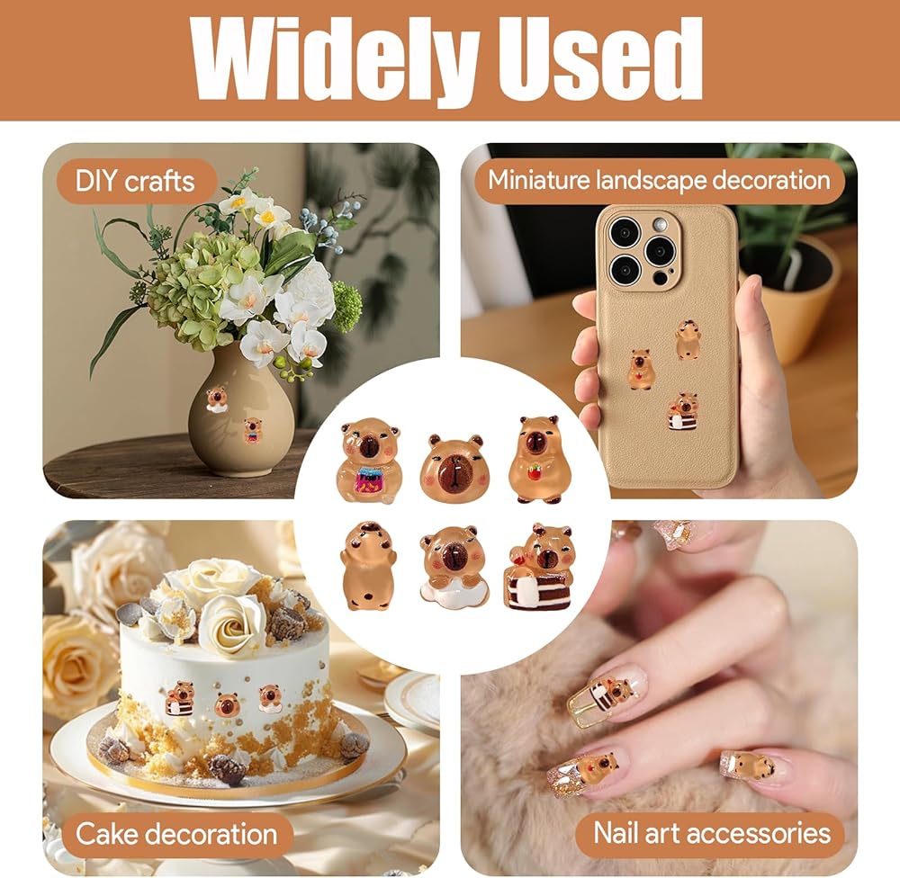 Creative Crafting: Ideal for DIY jewelry, nail art, and more—combine these capybara figures with beads and charms to design unique bracelets, necklaces, or keyrings. They also make irresistible additions to greeting cards or scrapbooks for a whimsical twis